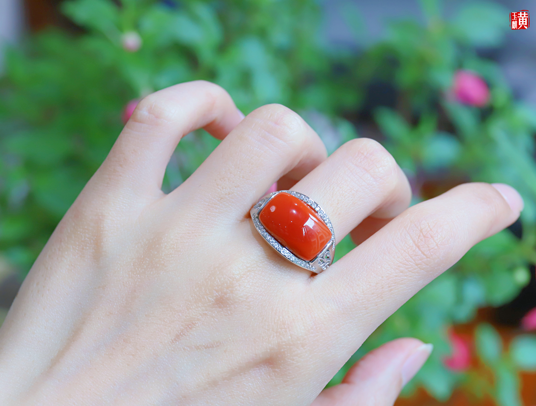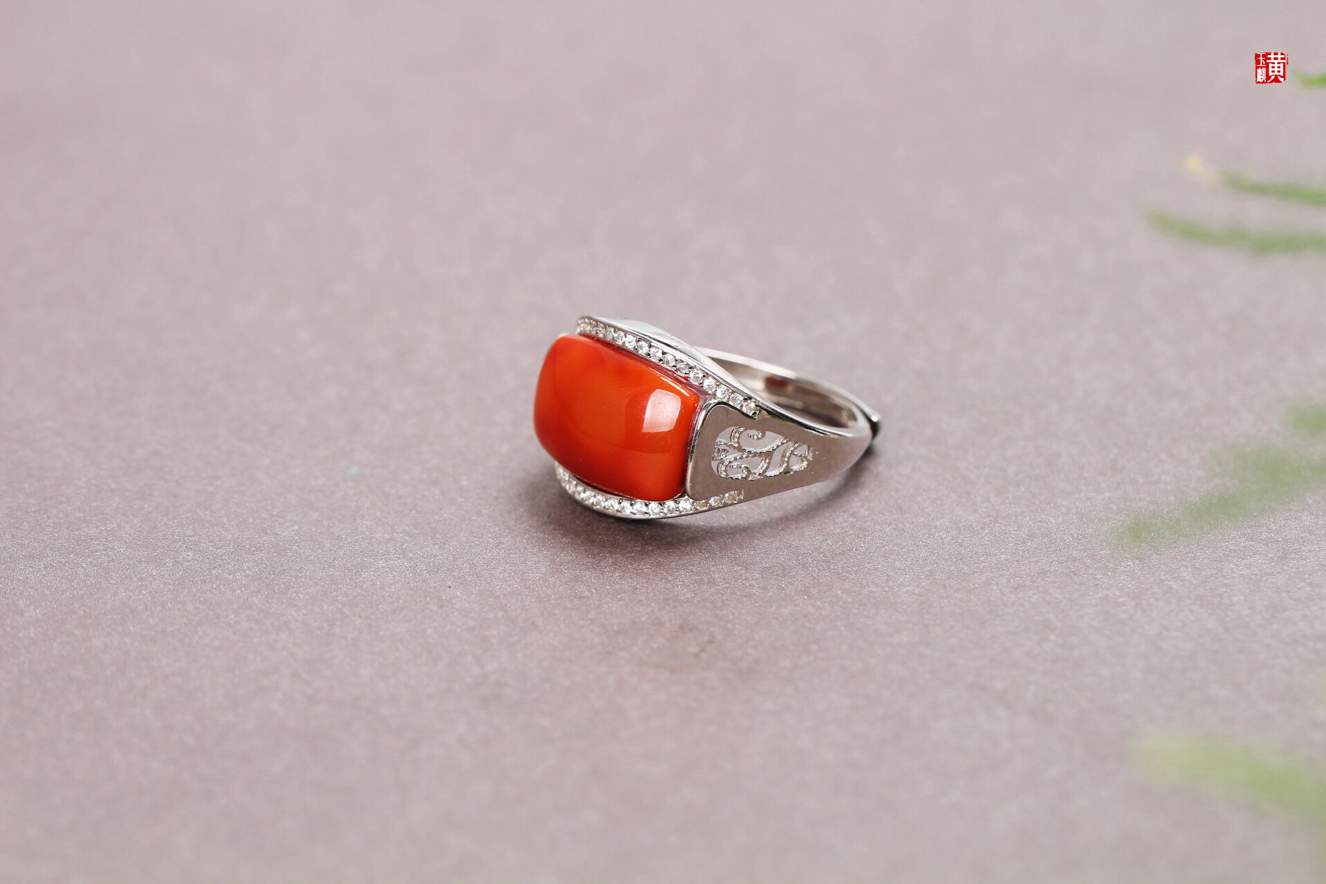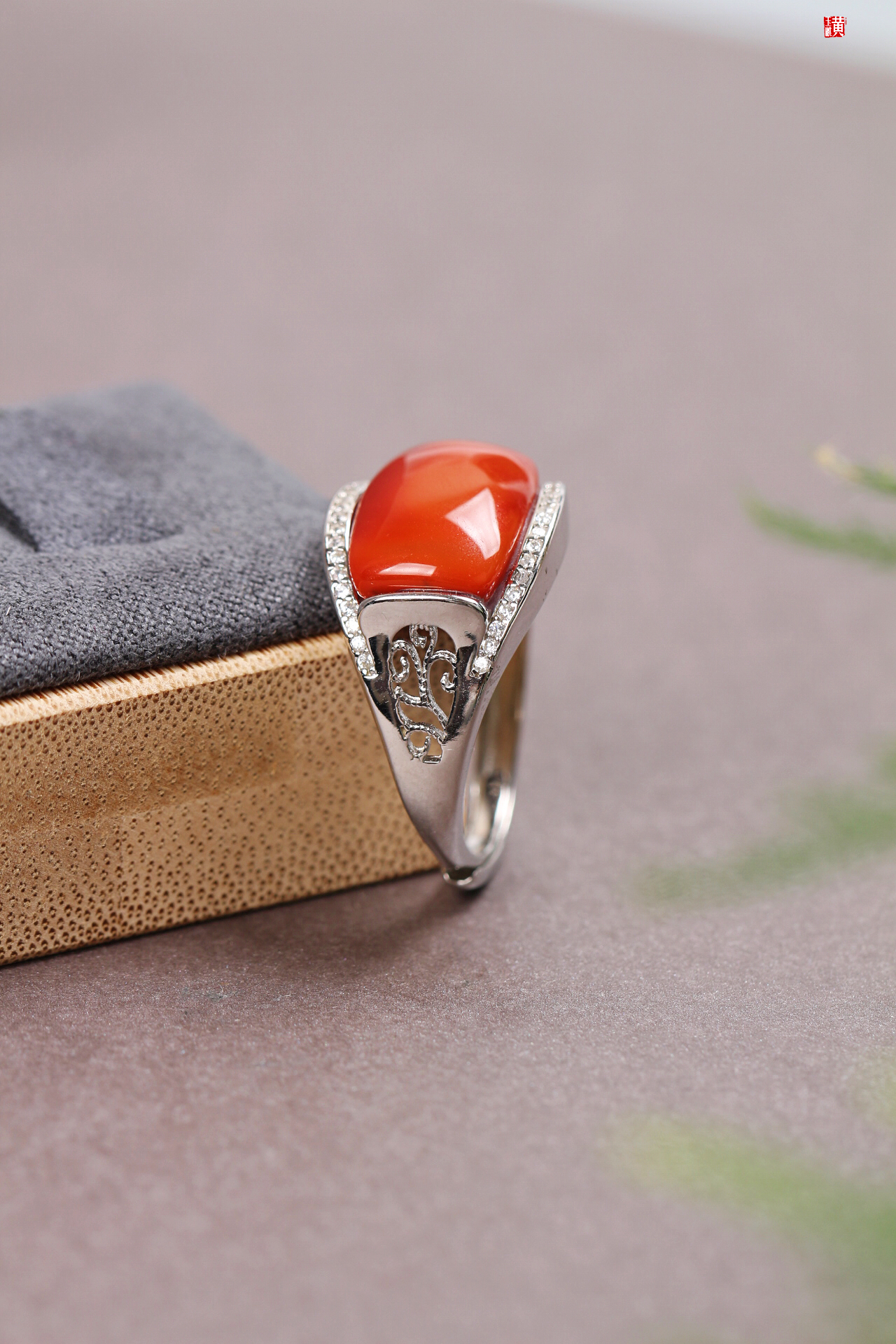 南红马鞍戒【子言】,925银镶,活扣可调节