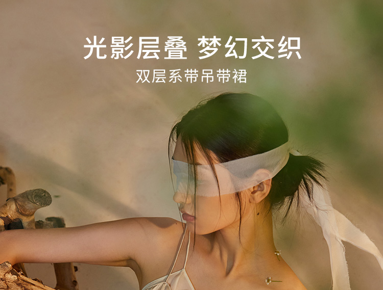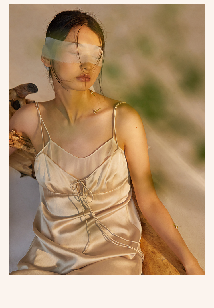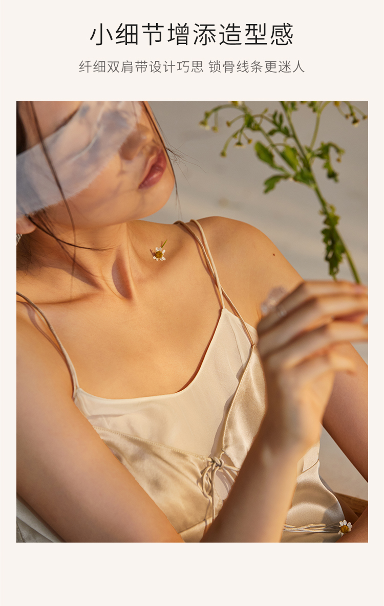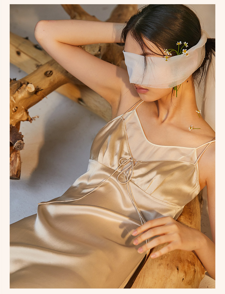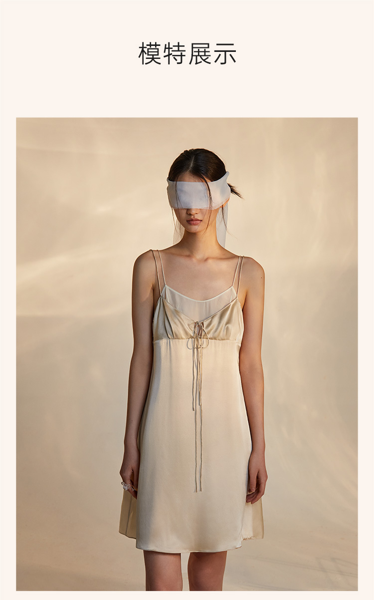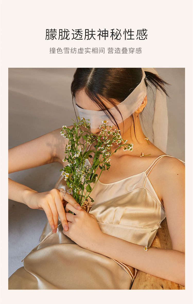 桑罗真丝假两件系带吊带裙撞色雪纺睡裙简约高级睡衣女2024年新款