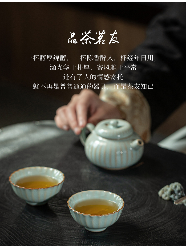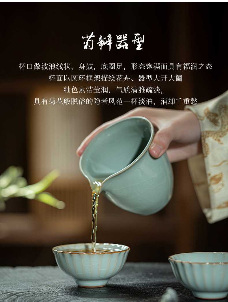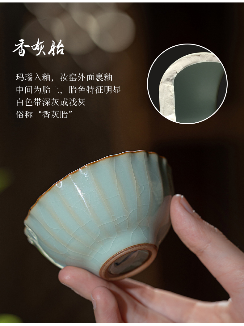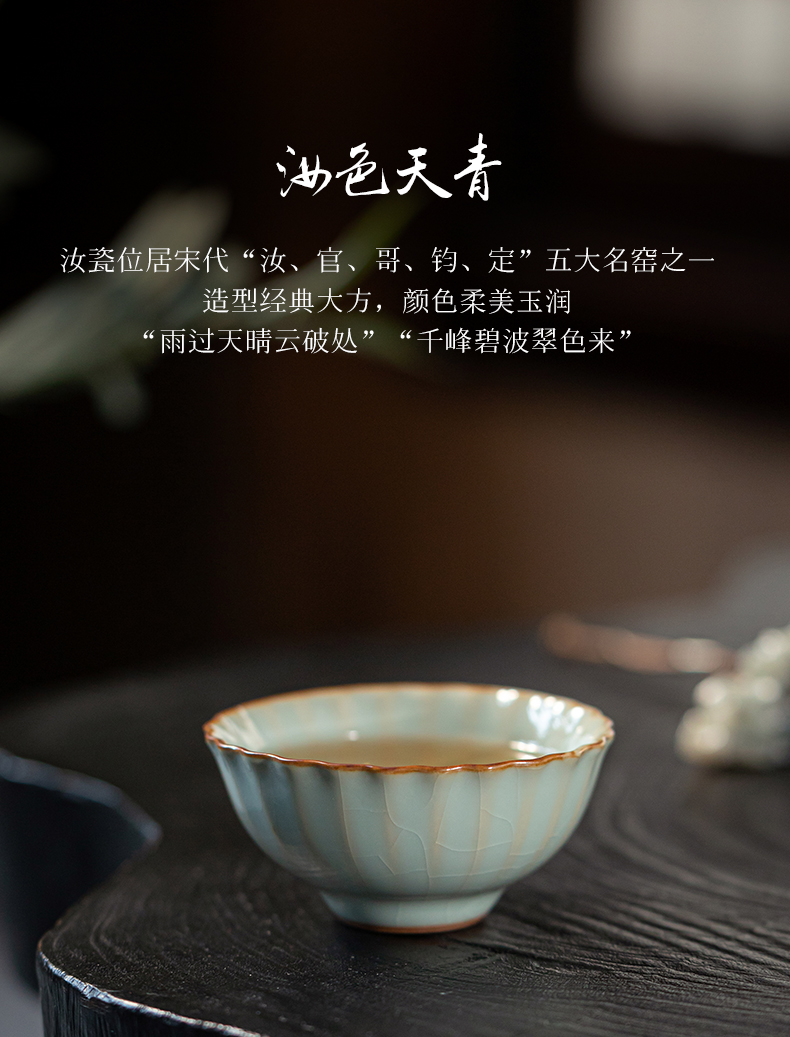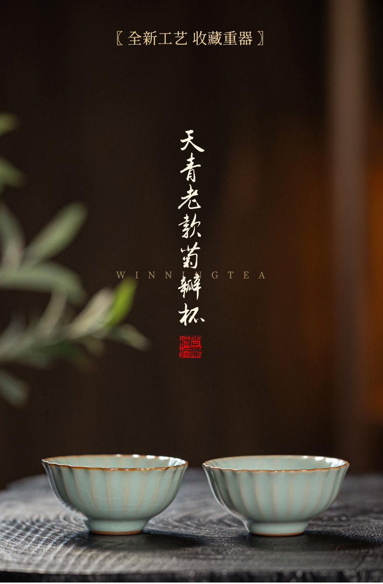 问鼎汝瓷鼎峰系列天青老款菊瓣杯