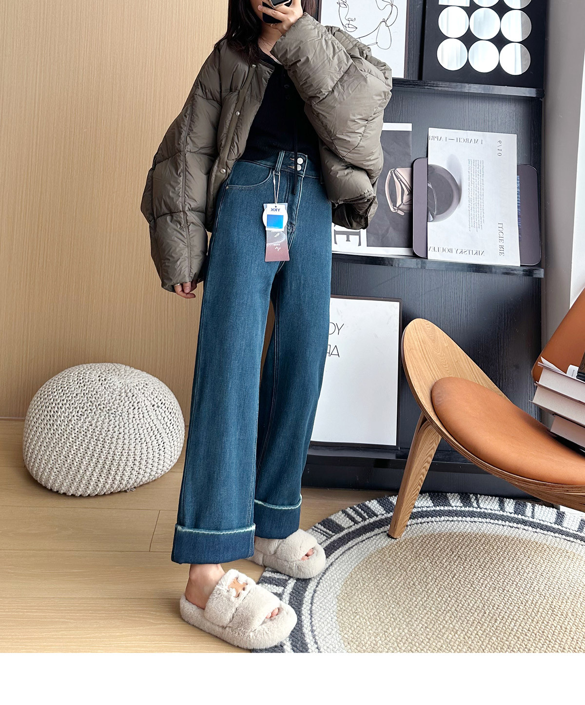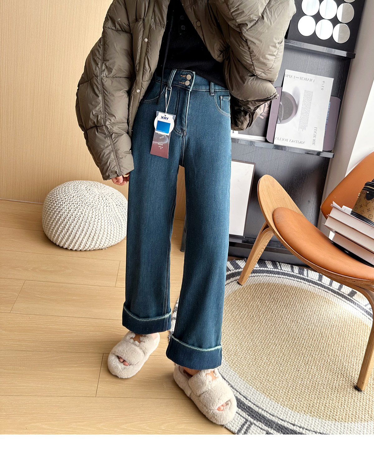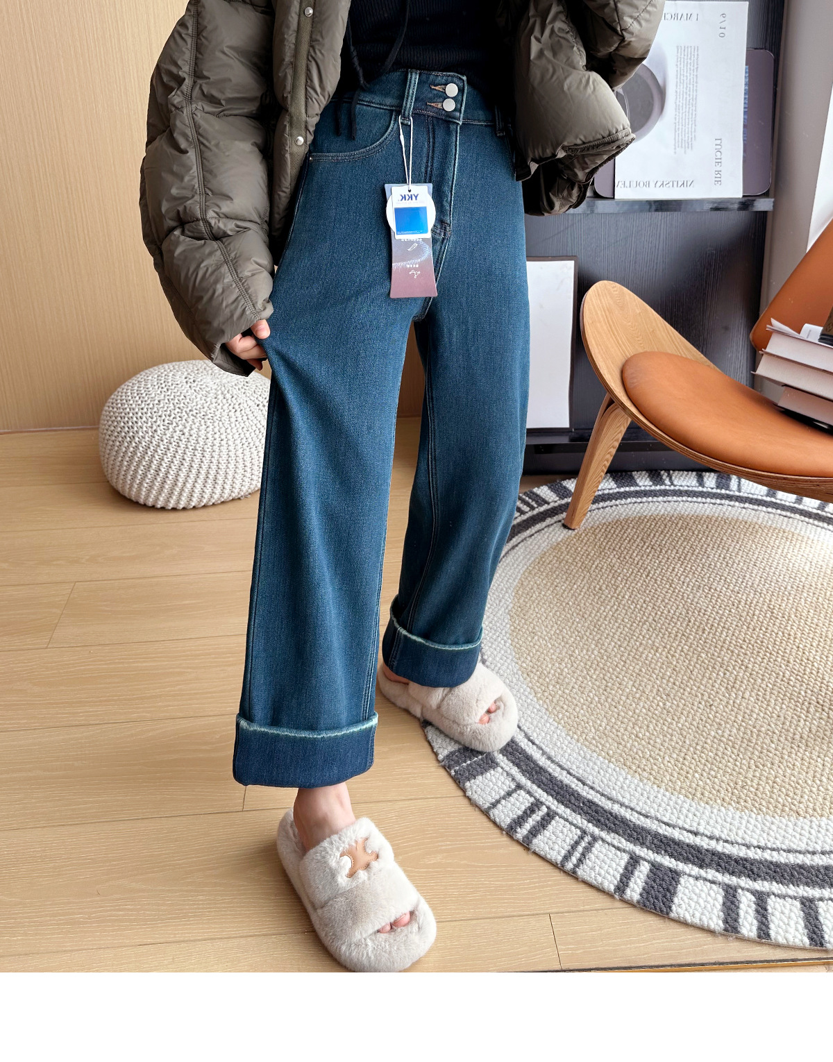 【十级抗寒!拒绝臃肿】2025冬季厚实奥利绒大翻边加绒小个子直筒阔腿裤 商品图2