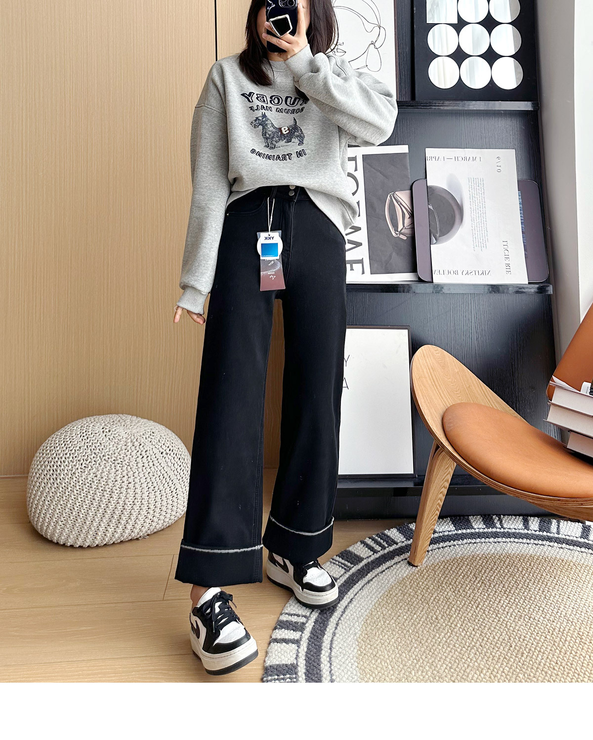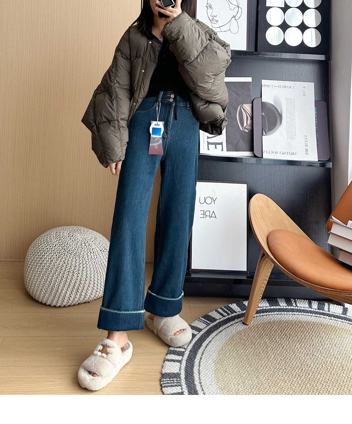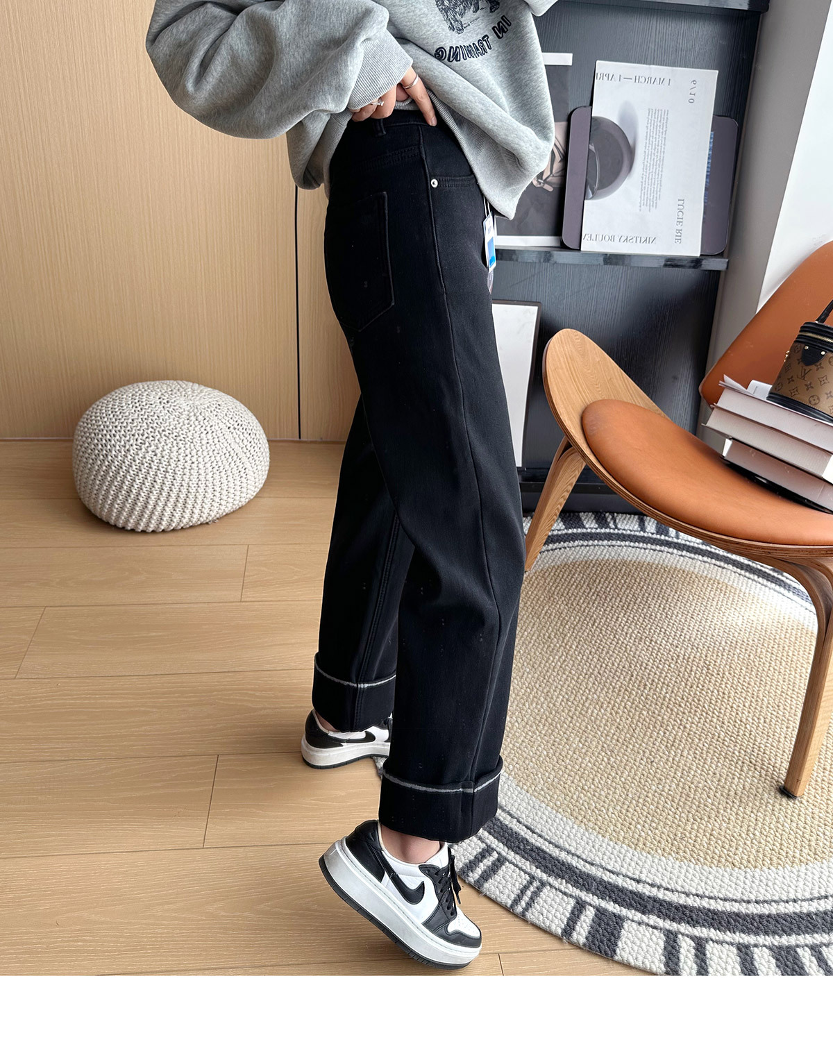 【十级抗寒!拒绝臃肿】2025冬季厚实奥利绒大翻边加绒小个子直筒阔腿裤 商品图2