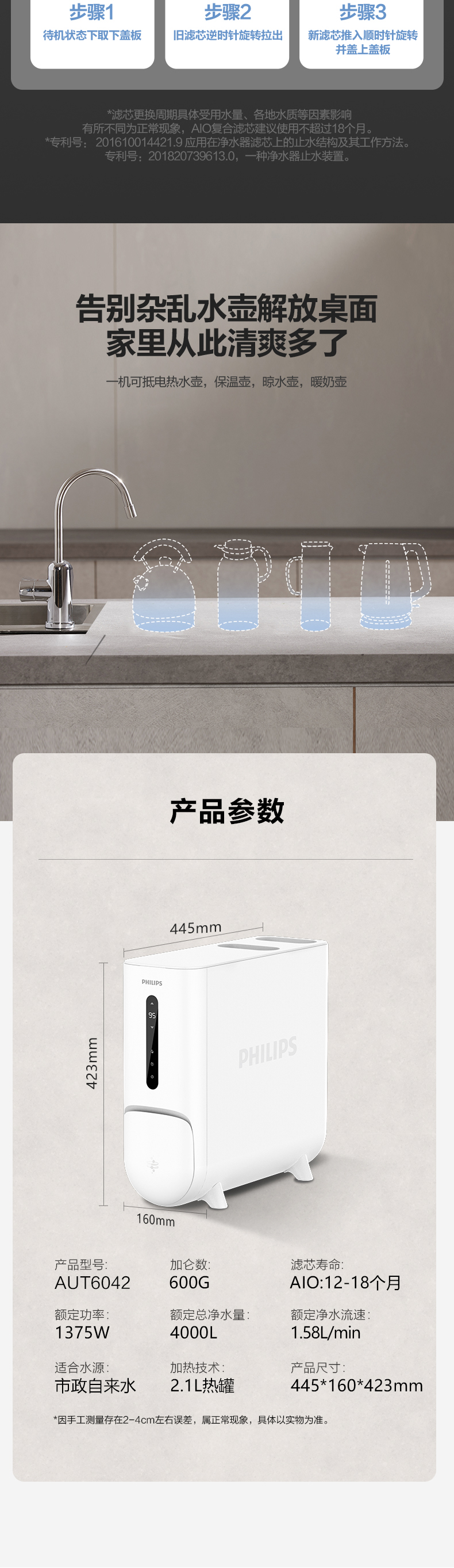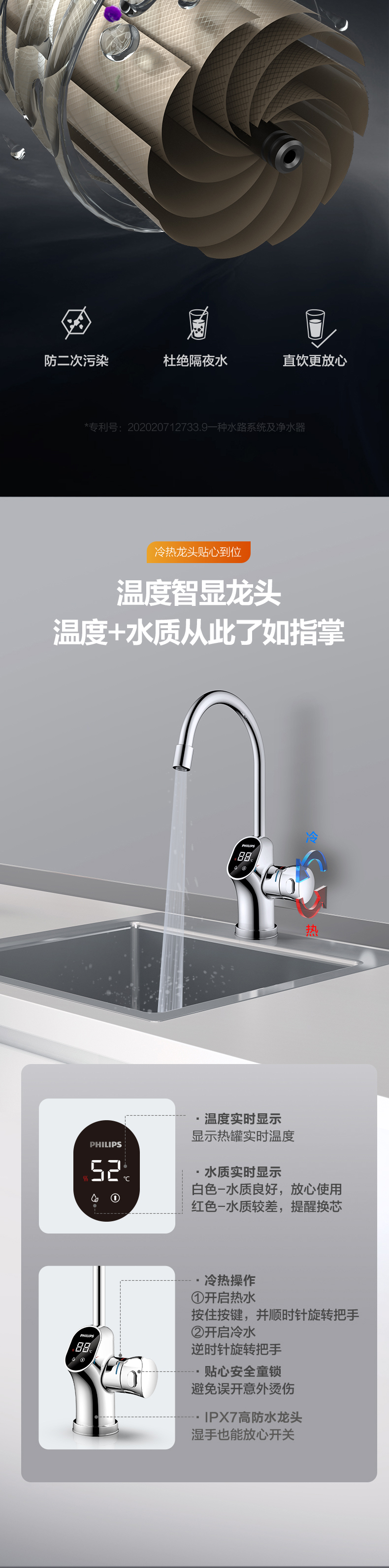 飞利浦(PHILIPS) 鲸鱼座净水器家用直饮加热RO反渗透净水器冷热母婴净水器AUT6042