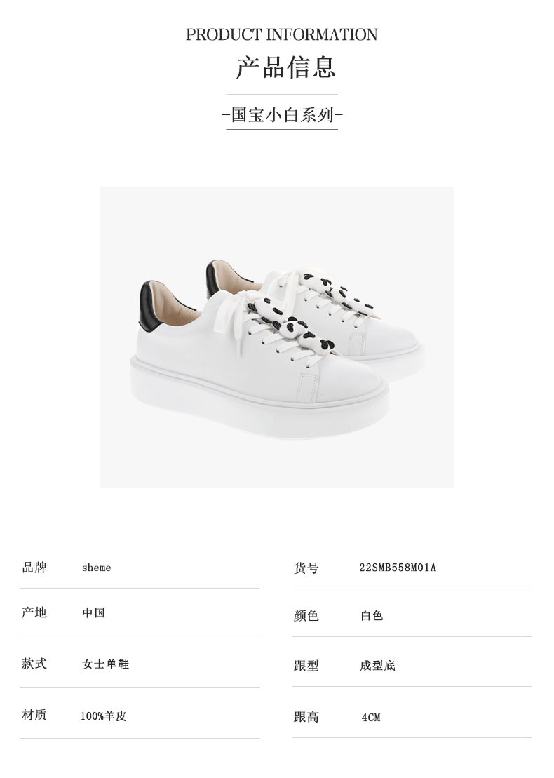 sheme国宝小白系列烫钻熊猫头运动休闲男女同款系带运动鞋可定制