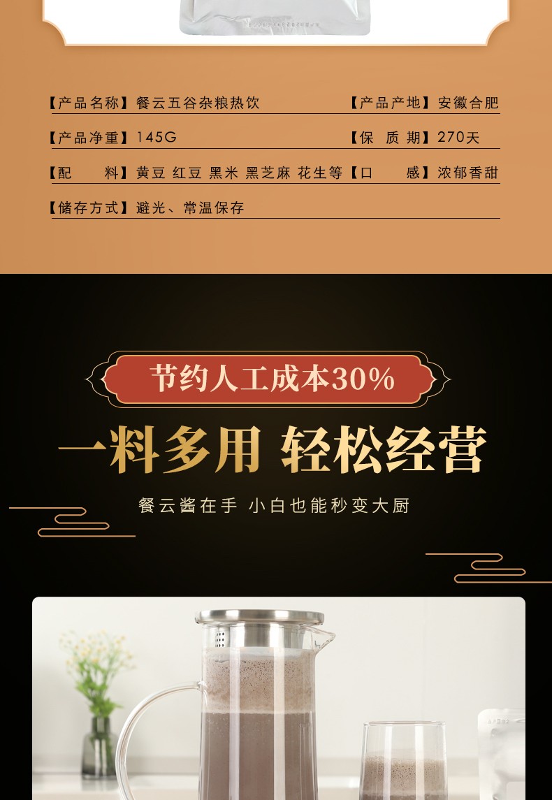 餐云五谷杂粮热饮 特色餐饮门店专用养生热饮 顾客一致喜欢的味道即养生又好喝 (145克一包榨一扎)