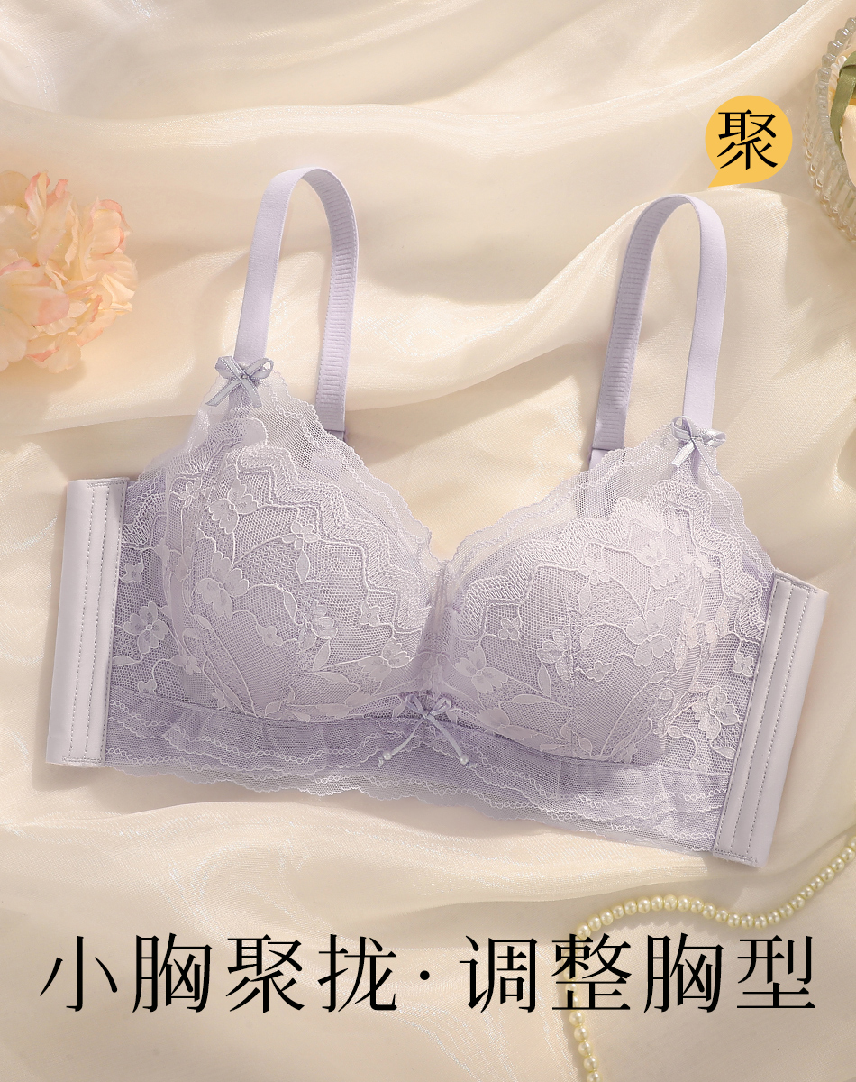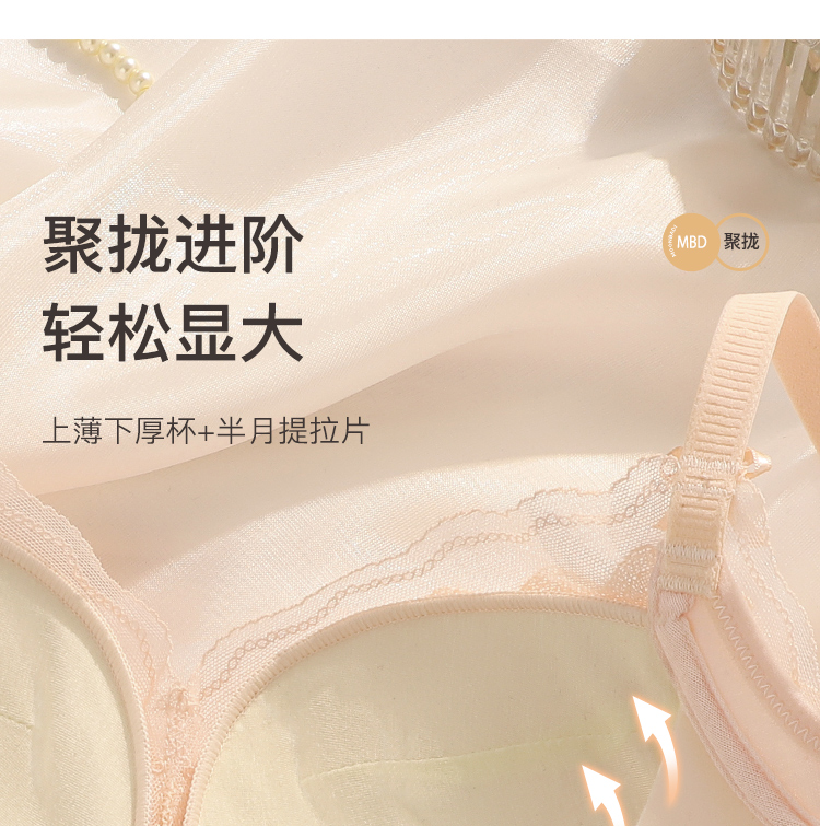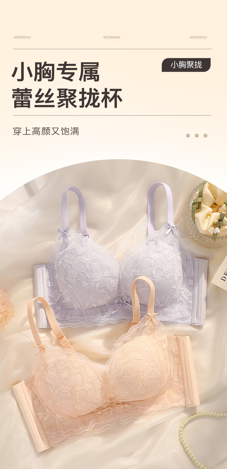 【小胸聚拢】时尚蕾丝聚拢内衣女上托月牙杯显大不空收副乳文胸罩百媚千娇