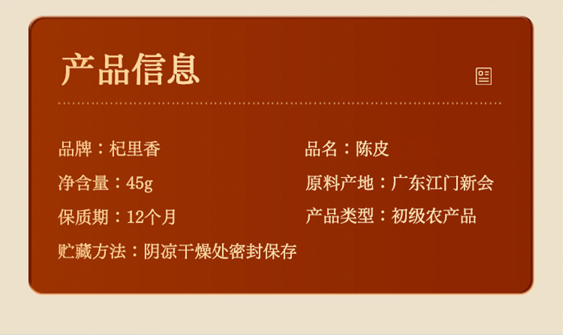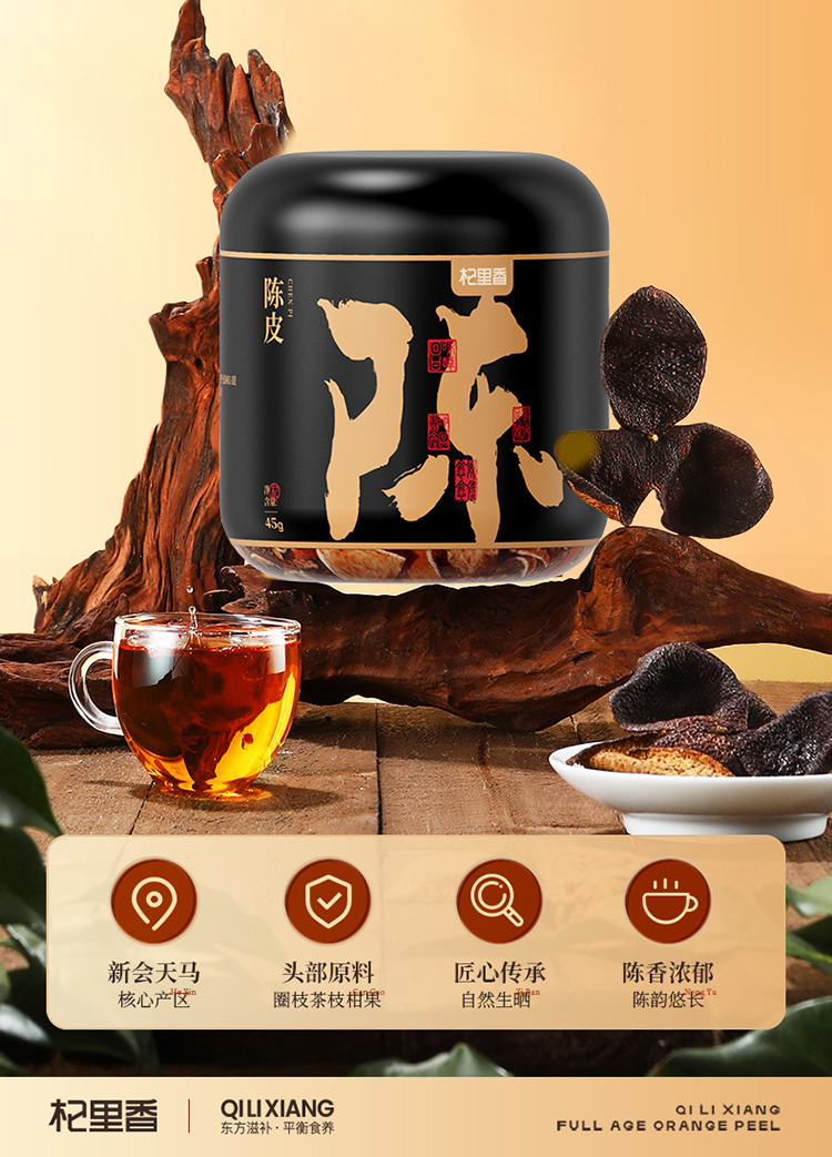 【冬季滋补】杞里香45g罐装陈皮新会核心产区。天然生晒,自然陈化 8年陈化泡茶水喝橘子皮老橘皮橙皮干广东