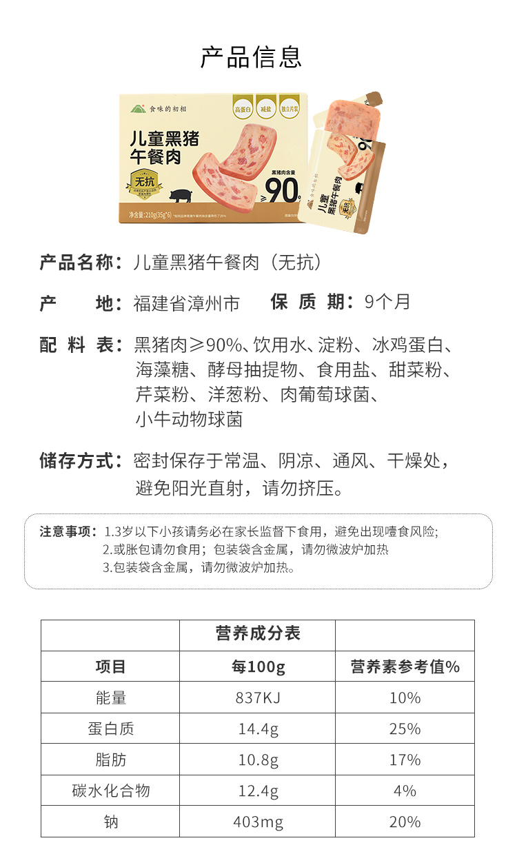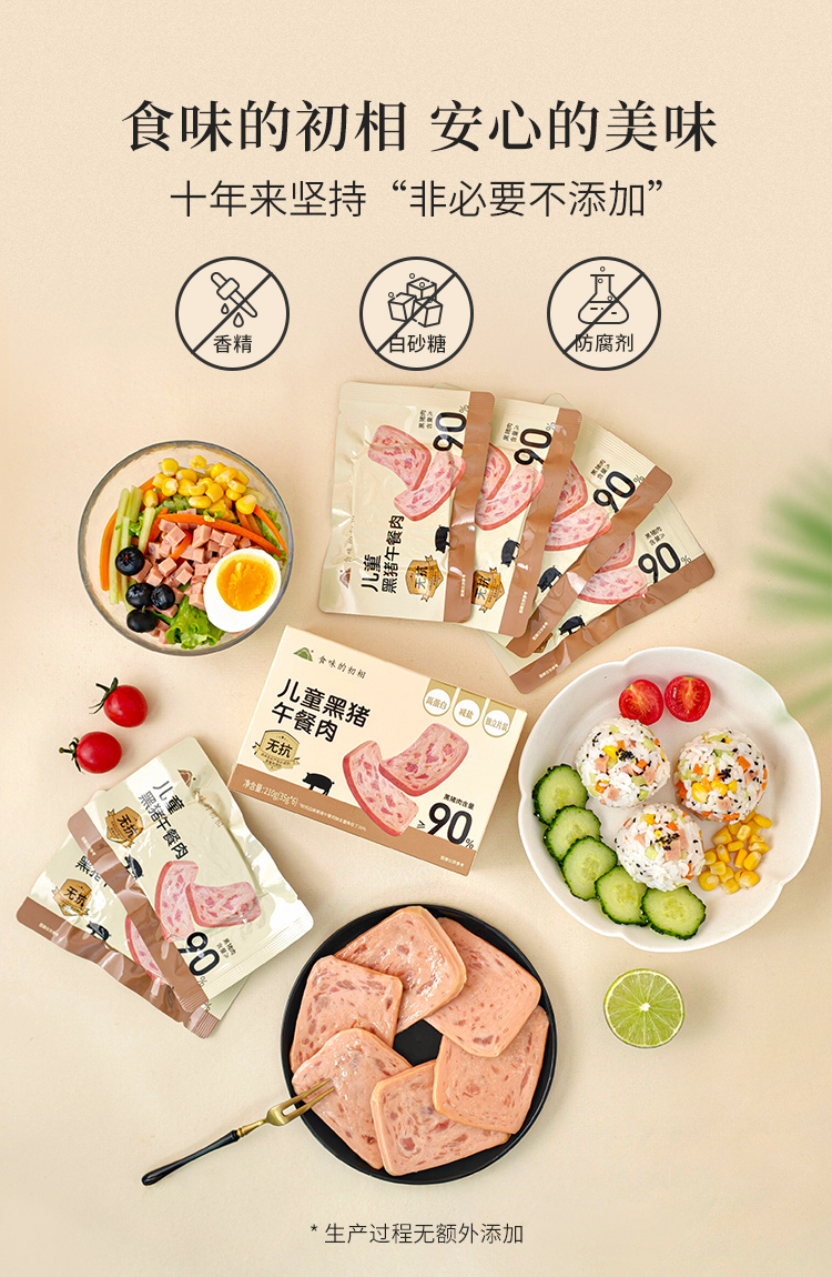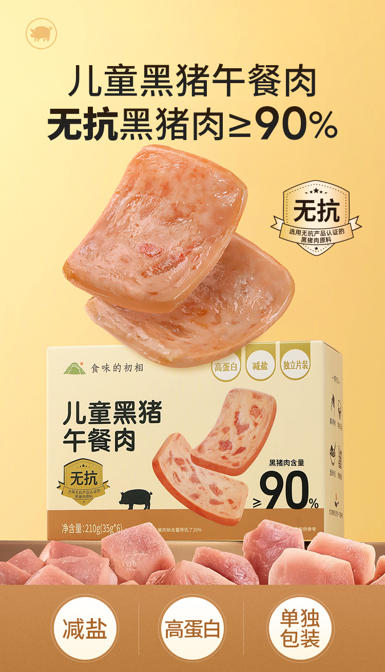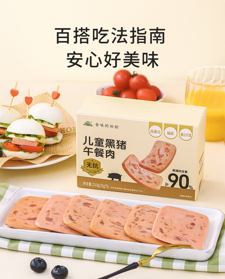 【米马团购】食味的初相 无抗黑猪午餐肉210g*1盒/2盒