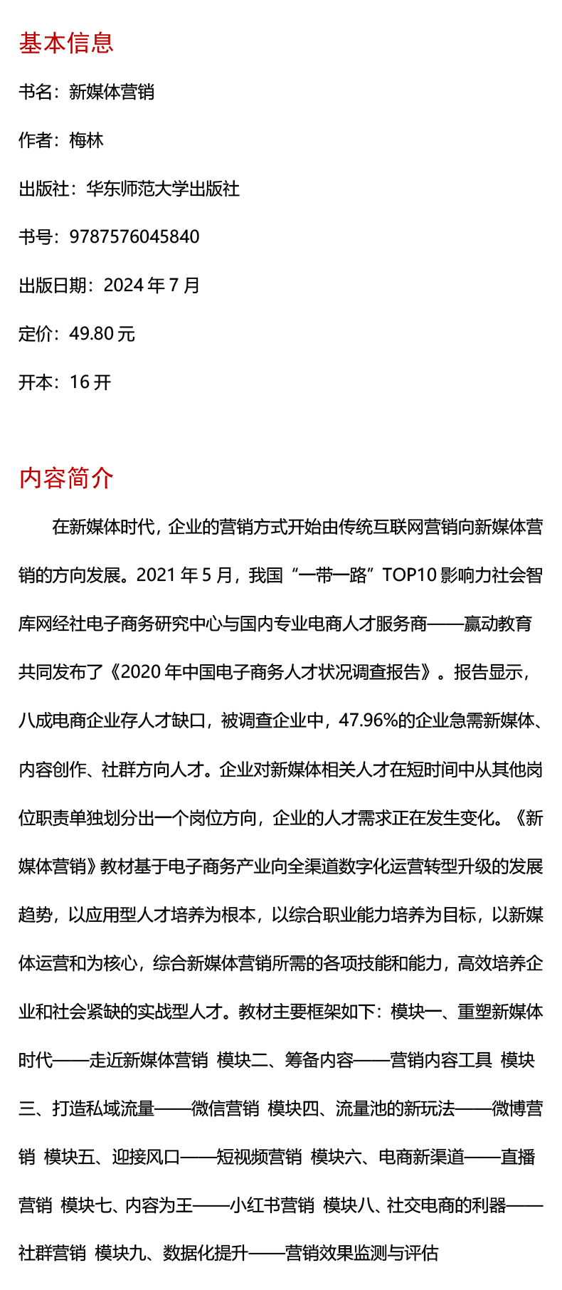 新媒体营销 职业教育财经商贸类专业教材 梅林 数字运营