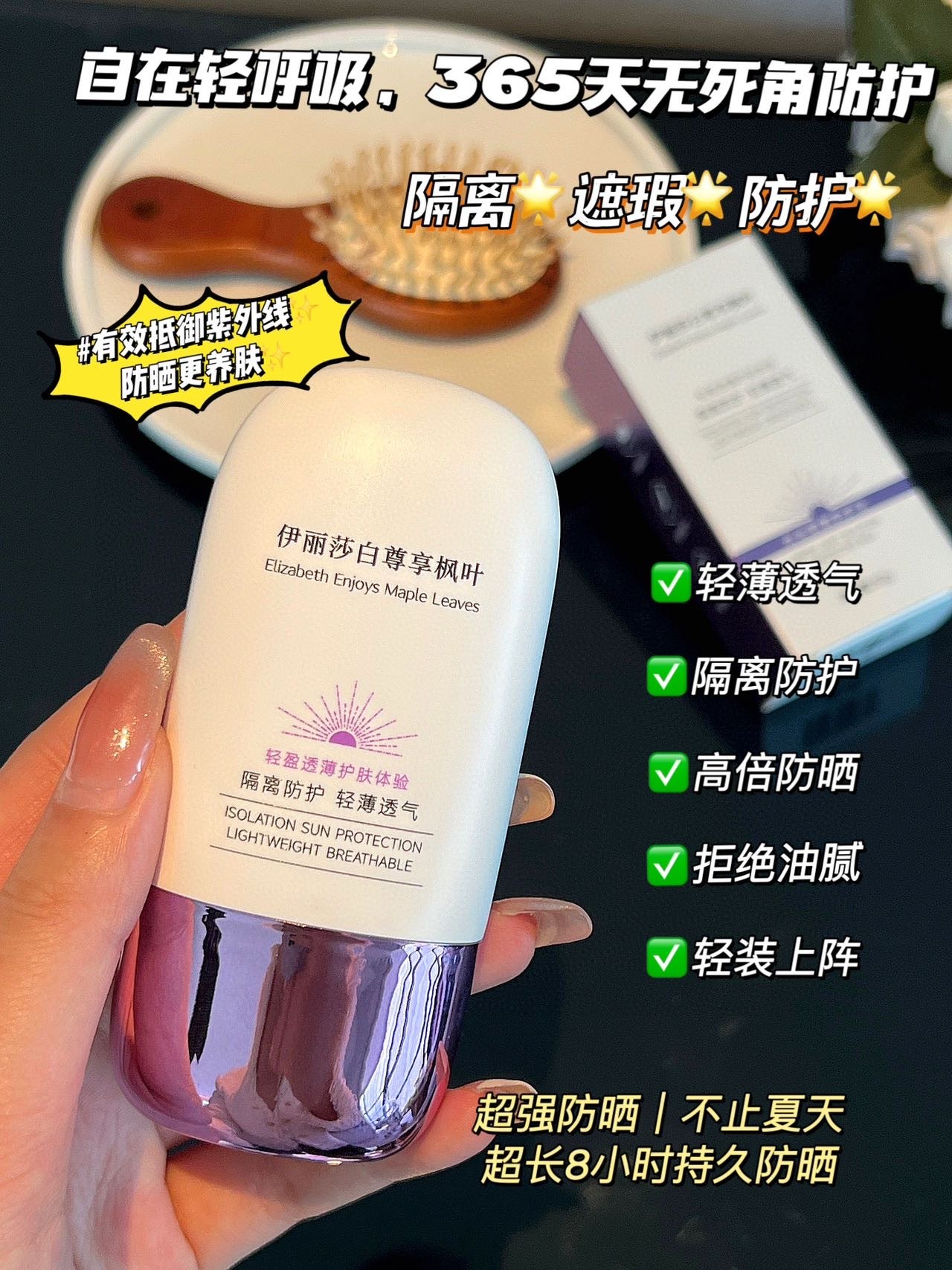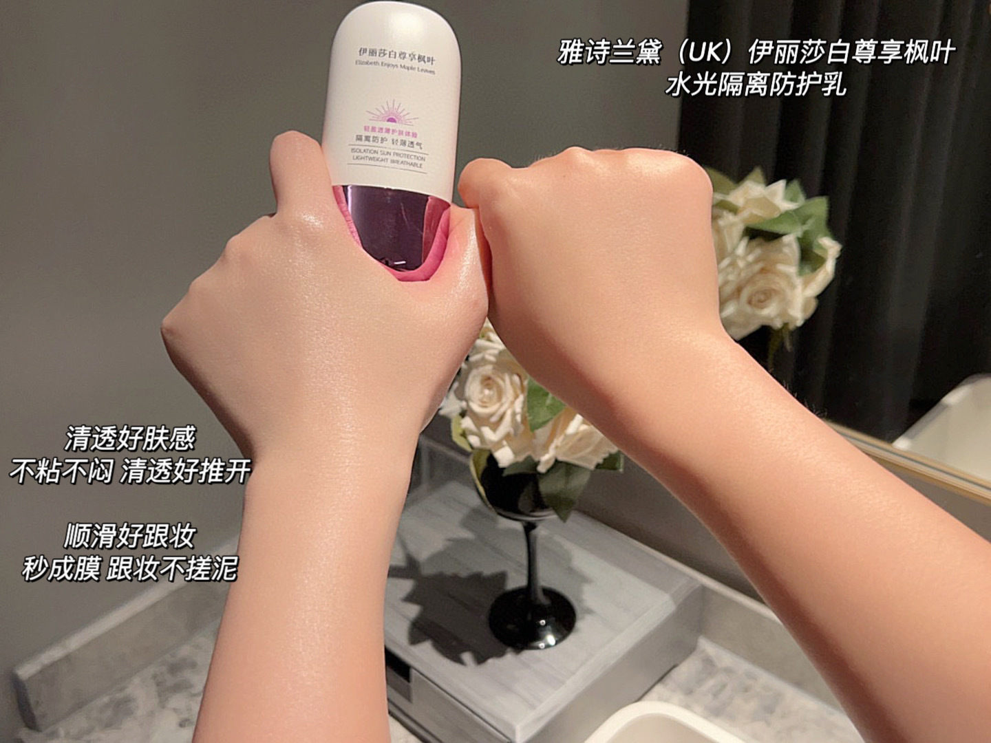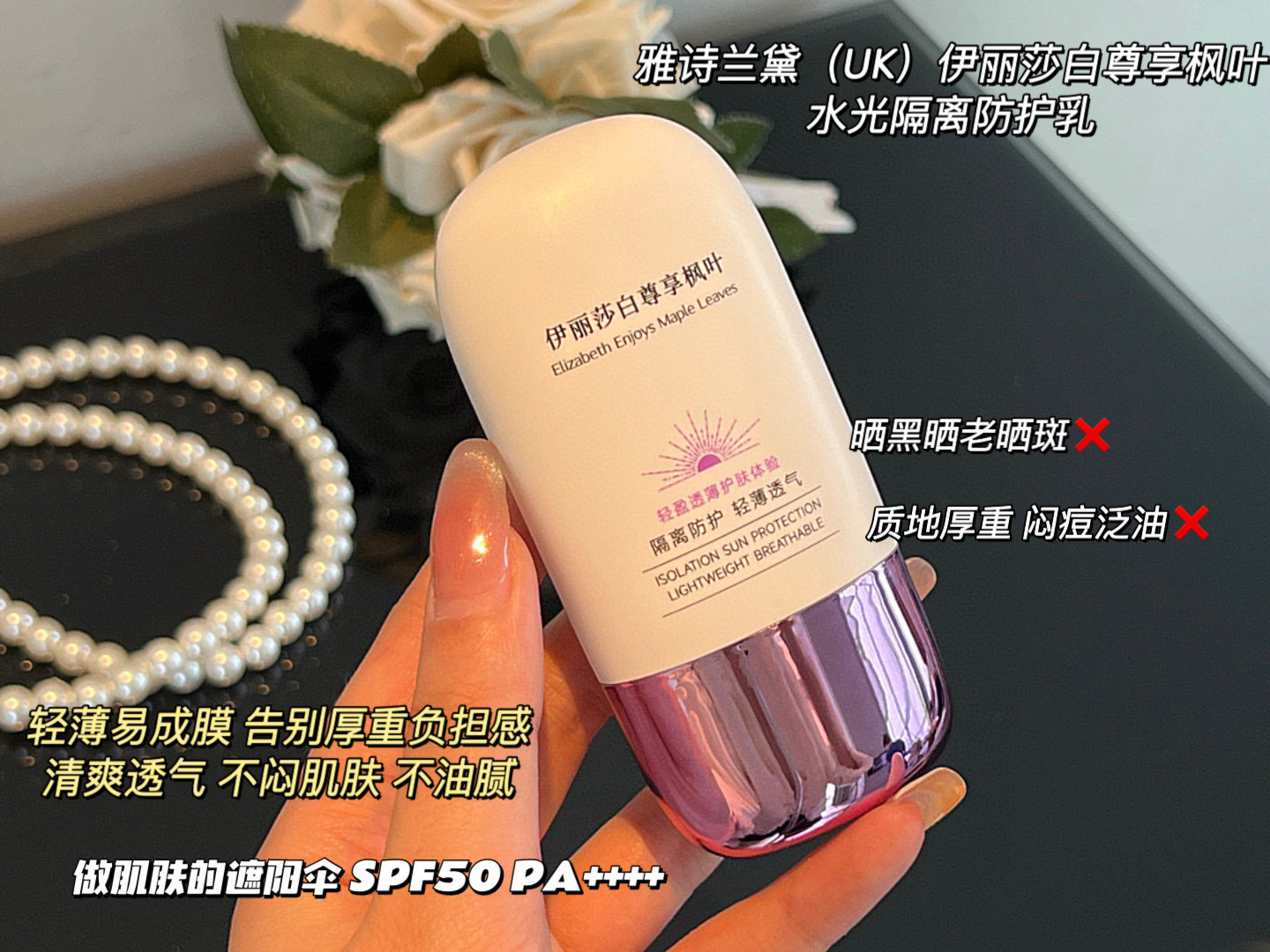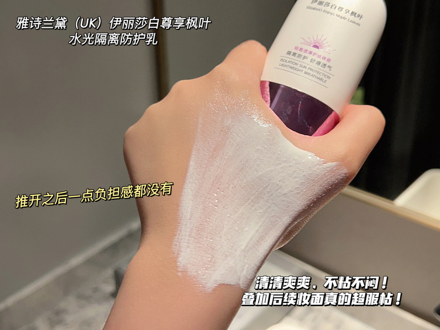 【雅诗兰黛(UK)伊丽莎白 尊享枫叶水光防护乳】“黄皮矫正器”!缓解日晒不适,轻若无感,不黏腻 可四季长期使用,不伤皮肤,物理防晒,免卸妆,有效阻隔UVA、UVB!
