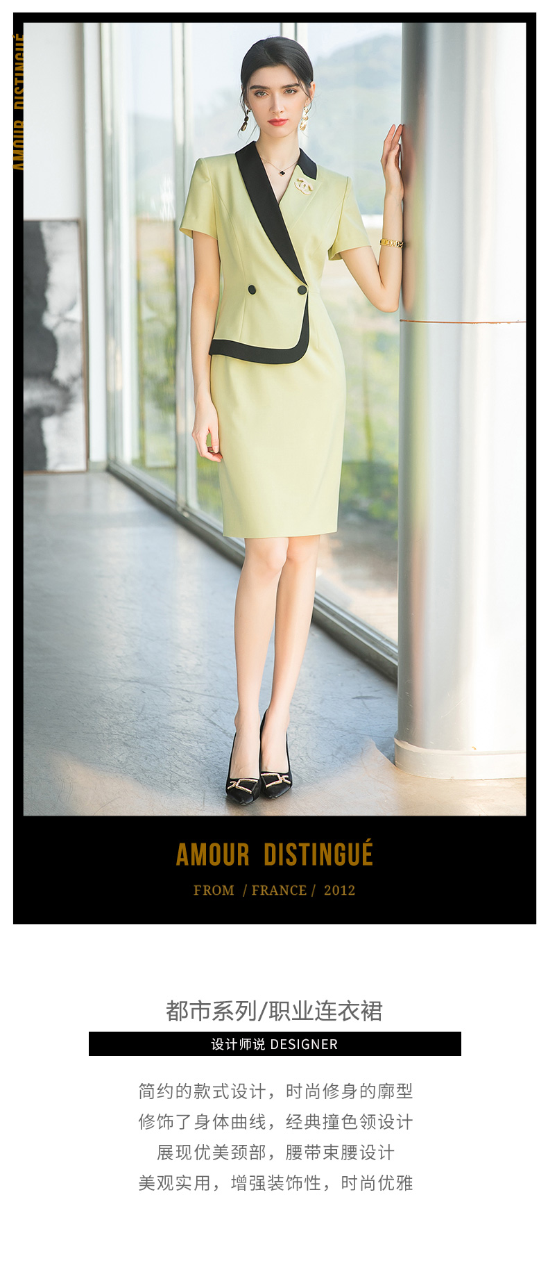 AD职业套装裙女2022年春夏工作服高端气质正装连衣裙绿色西装裙子