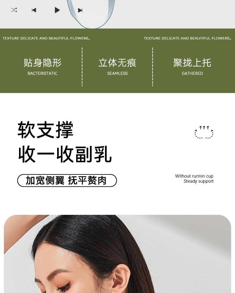 康妮雅女式文胸调整型内衣超薄款无钢圈收副乳防下垂无痕内衣