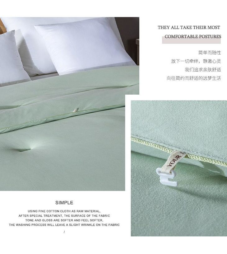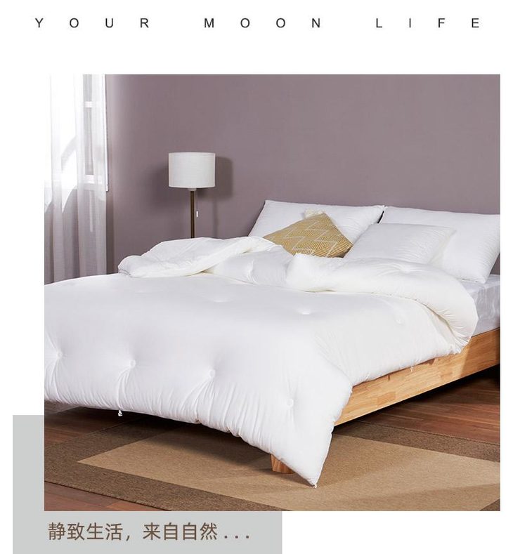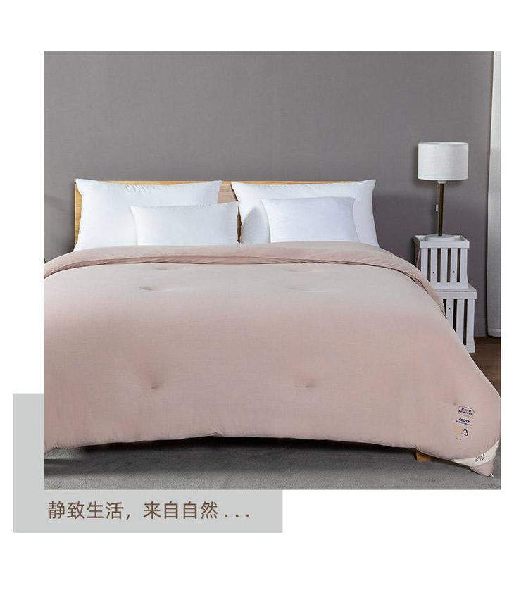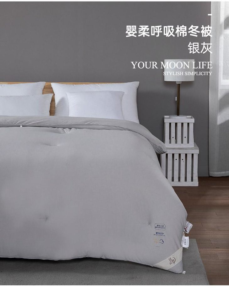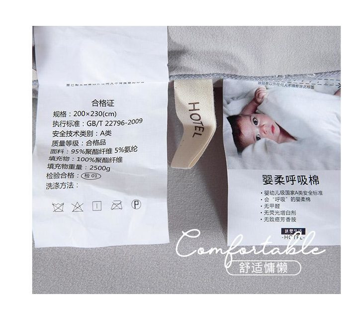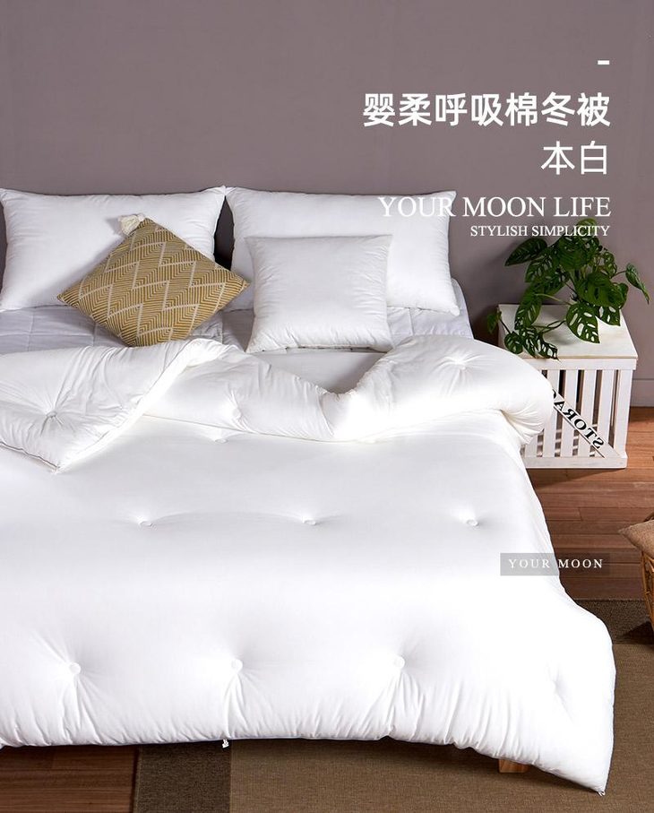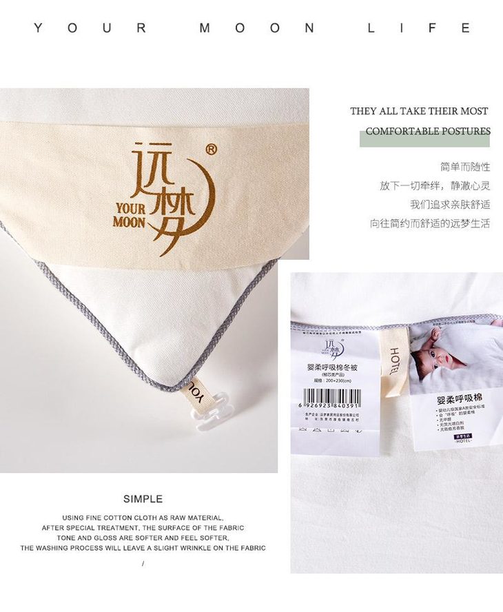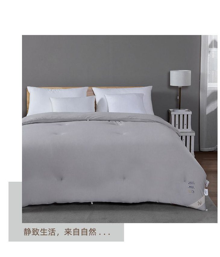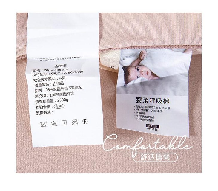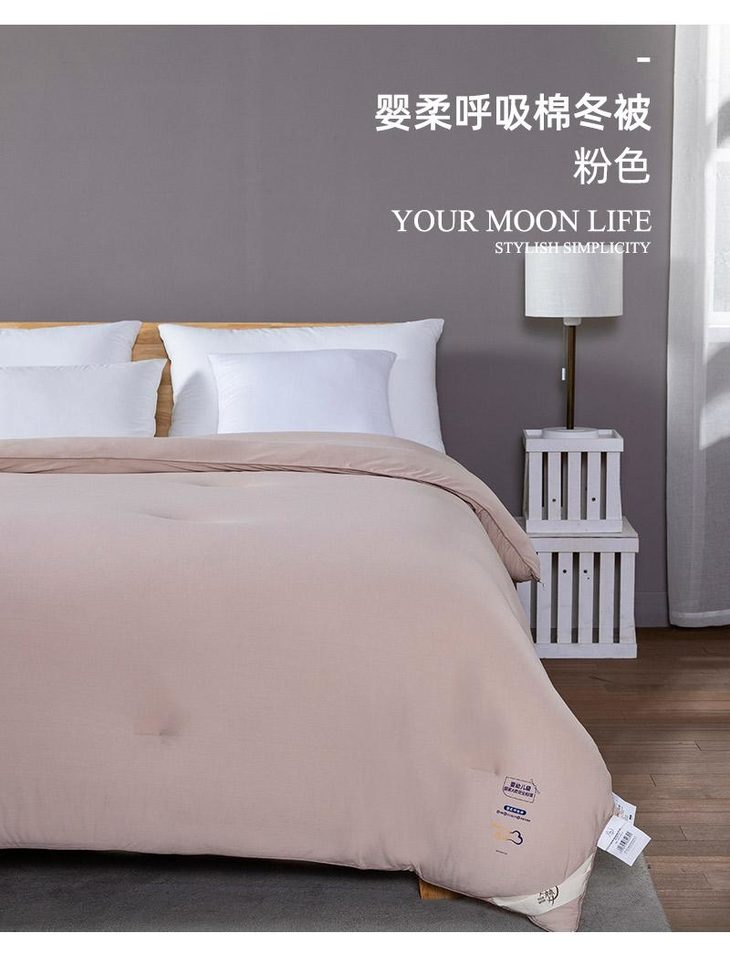 b.【媲美鹅绒填充】填充物臻选高级别仿鹅绒羽丝整张棉,科学配比,手感软糯有温度,纤维分布均匀,饱满有弹性,蓬松透气,与面料更粘合。纤维内部通过空气流通控制被窝里恒温舒适的环境,享受五星级睡眠体验。