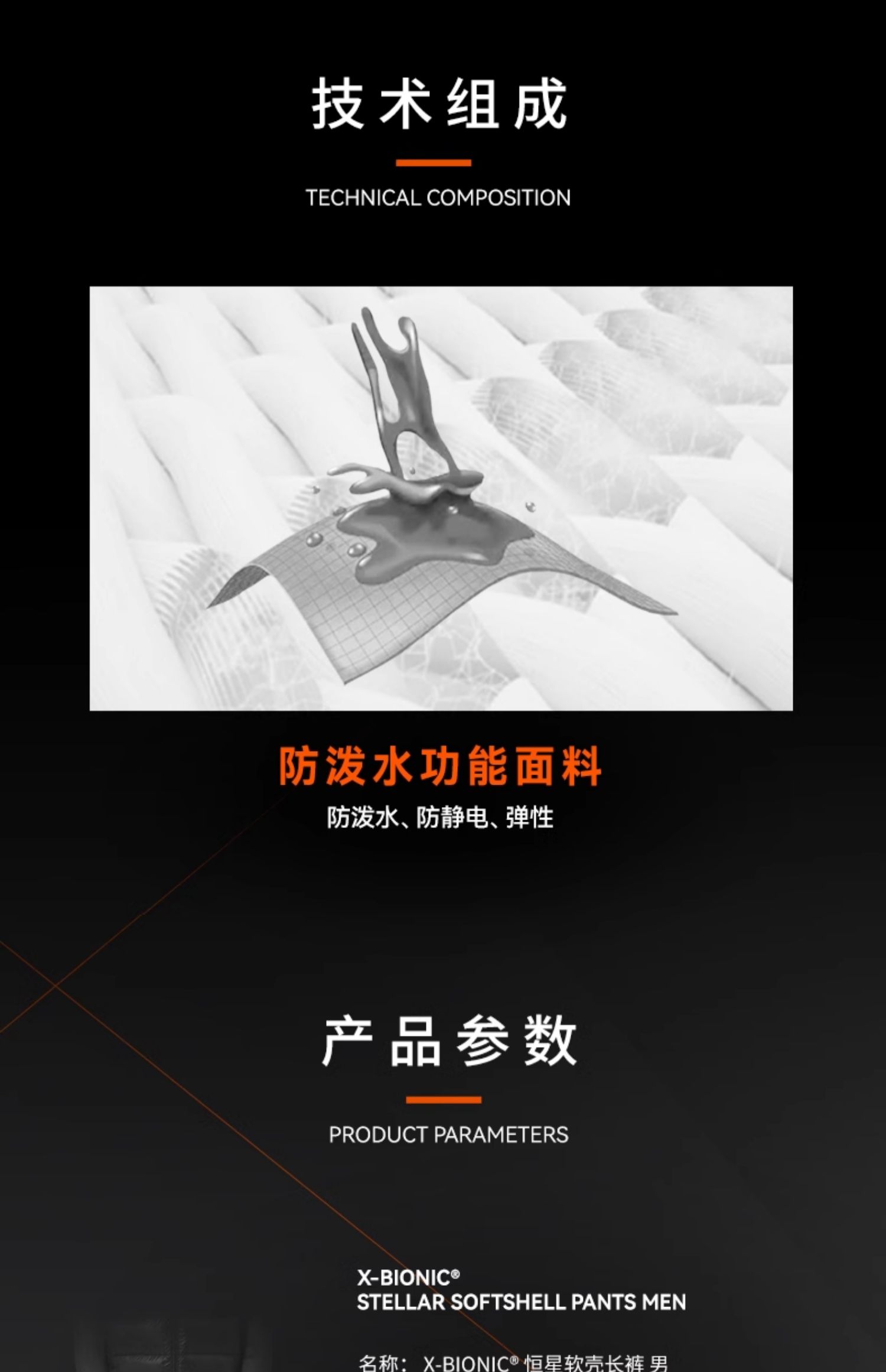 X-BIONIC 恒星软壳裤男 抓绒保暖秋冬户外防泼水加绒软壳裤24920N