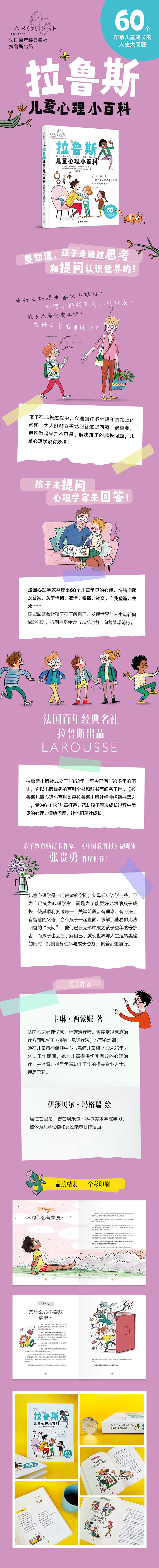 拉鲁斯出版社成立于1852年,至今已有150多年的历史,它以出版优秀的百科全书和辞书而闻名于世。对图书品质的追求使得拉鲁斯成为行业典范,拉鲁斯的品牌和出版物已经成为法兰西文化遗产的一部分。《拉鲁斯儿童心理小百科》是拉鲁斯出版社经典畅销书籍之一,专为6_12岁儿童打造,帮助孩子解决成长过程中常见的心理、情绪问题,让他们茁壮成长。