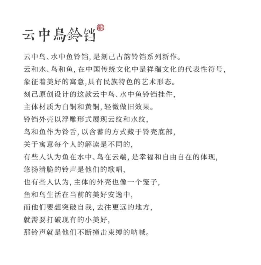刻己 - 铜铃铛“云中鸟”黄铜白铜钥匙扣 中国风吊坠挂件挂饰礼物【官方授权 】【48小时发货】
