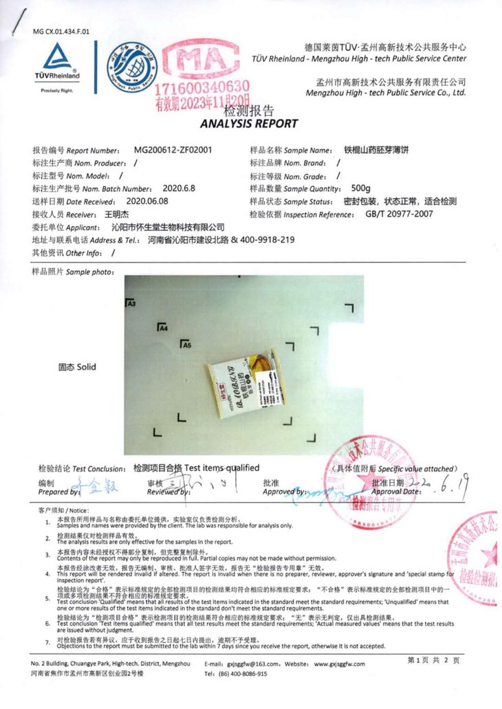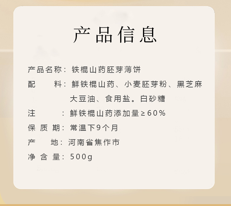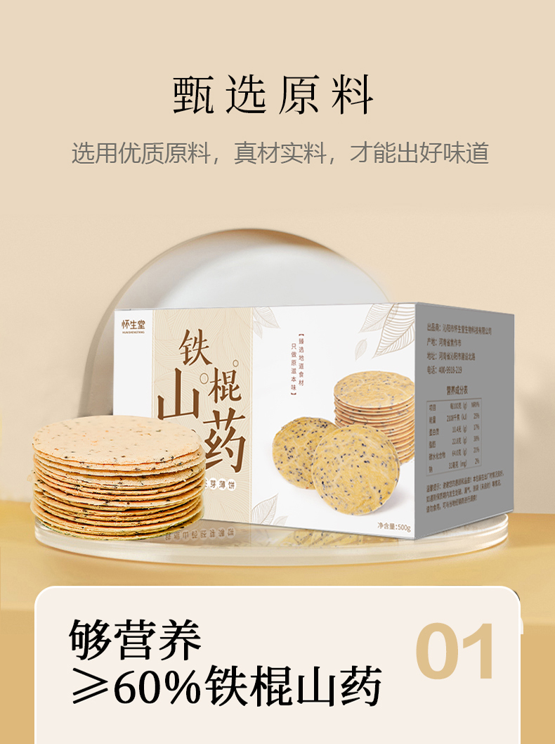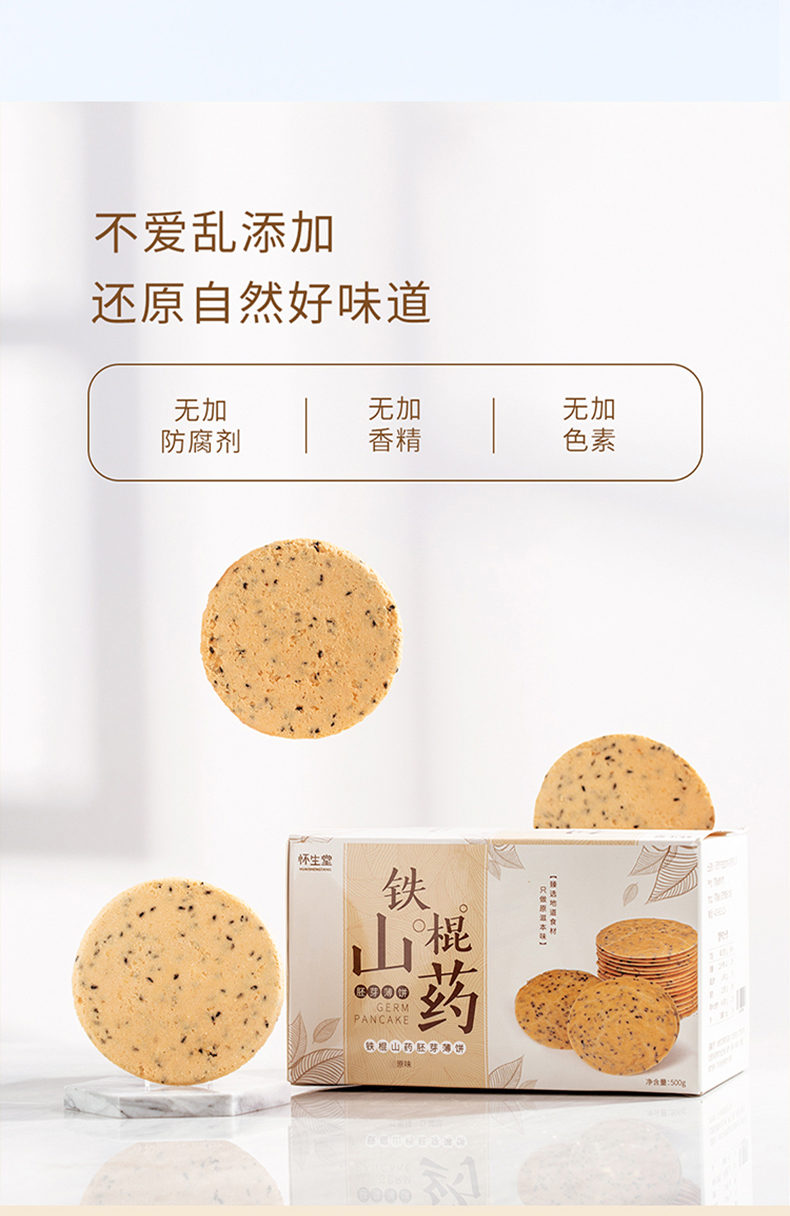 【怀生堂 】铁棍山药胚芽薄饼「 山药≥60%」,健康养生零食!1盒装500克