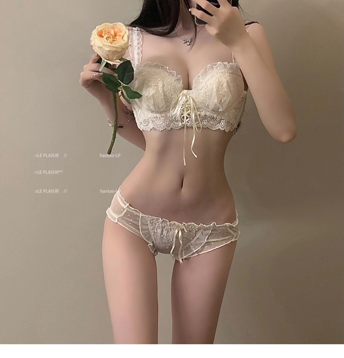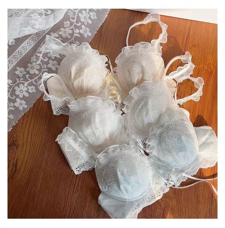 【超仙超甜!日系纯欲蕾丝内衣】亲肤裸感,舒适聚拢,塑造好胸型!女小胸聚拢无钢圈可爱学生bra性感文胸套装