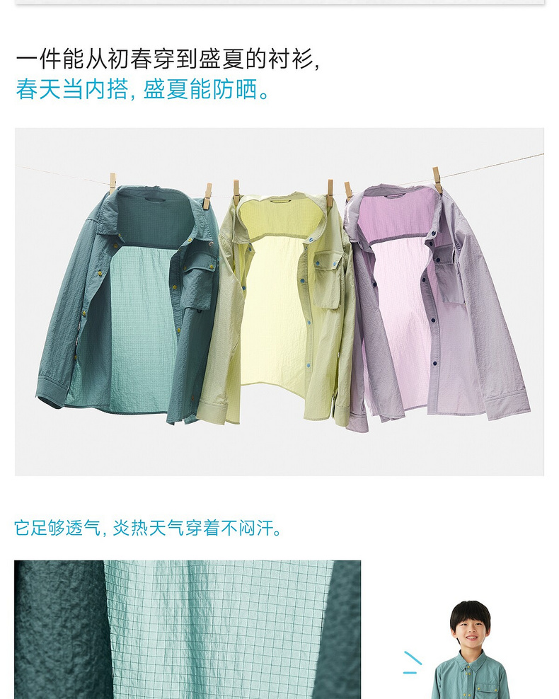 【夏Vol.1】allblu幼岚【双线格防晒衬衫】儿童外套26夏季新品柔软ZY
