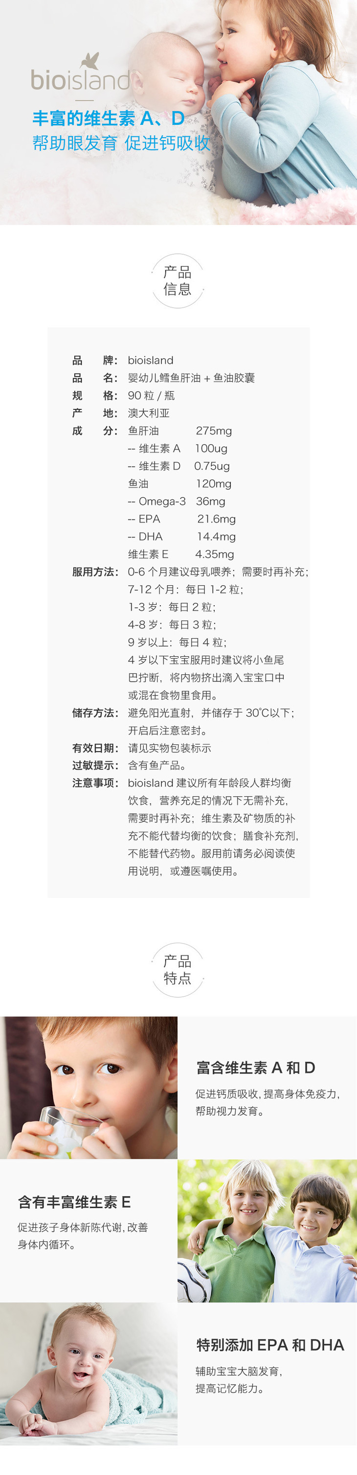 澳洲 Bio island佰澳朗德 婴幼儿鳕鱼肝油胶囊 90粒