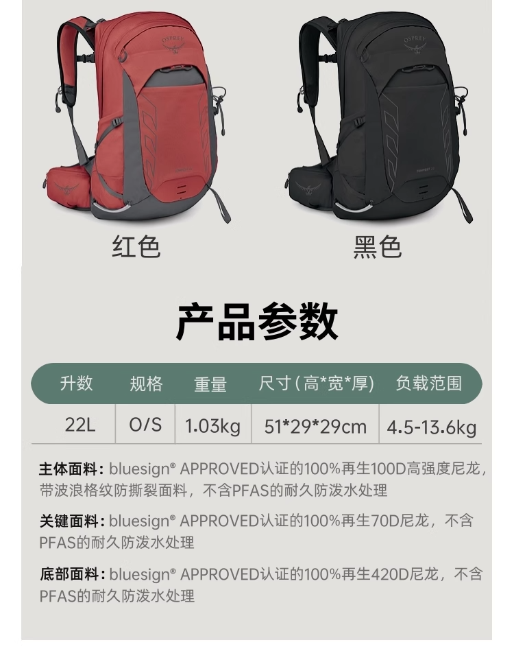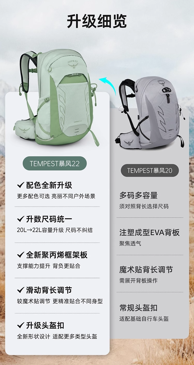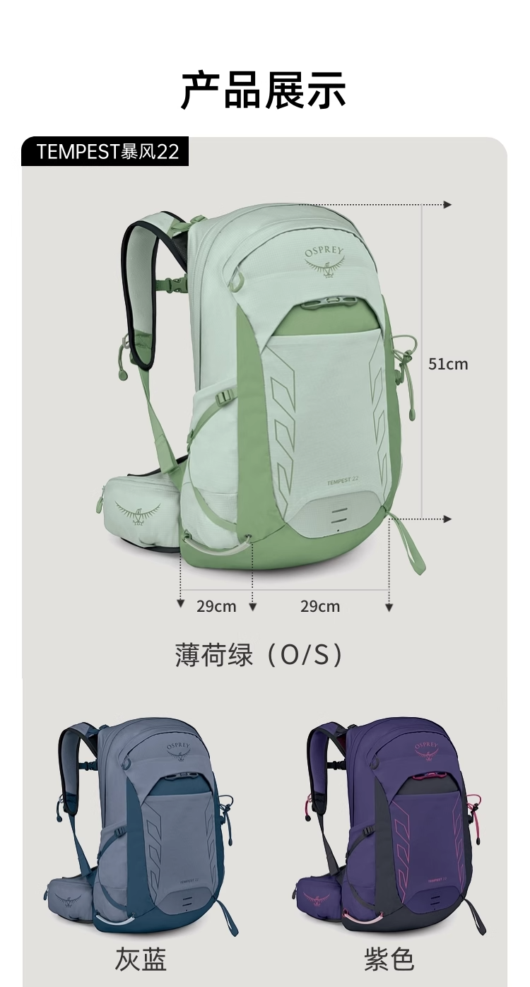 OSPREY Tempest暴风22L户外旅行徒步登山轻量化双肩背包女25年新品