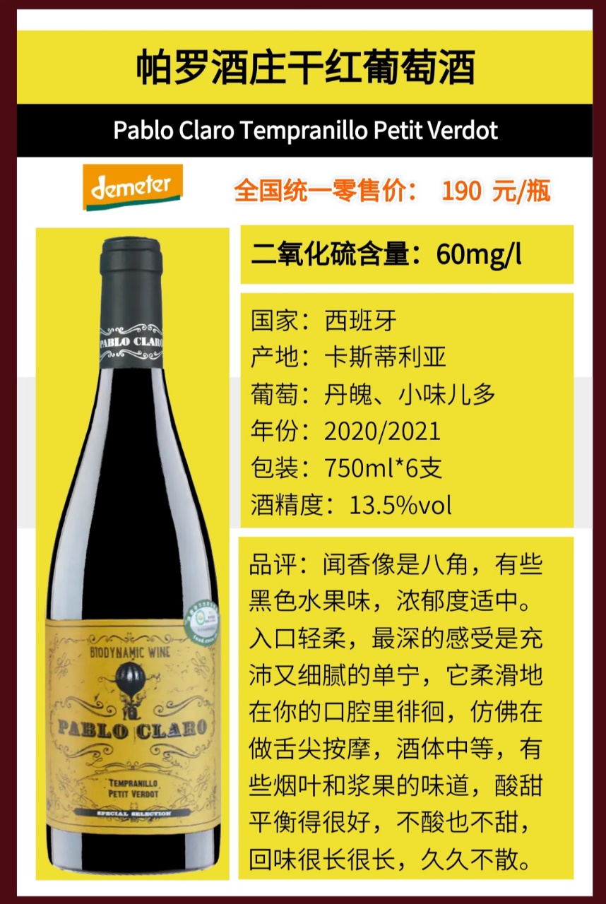 西班牙帕罗全系列8款有机葡萄酒 千红/千白/桃红/天然高泡 Demeter认证、欧盟有机认证和中国有机认证!