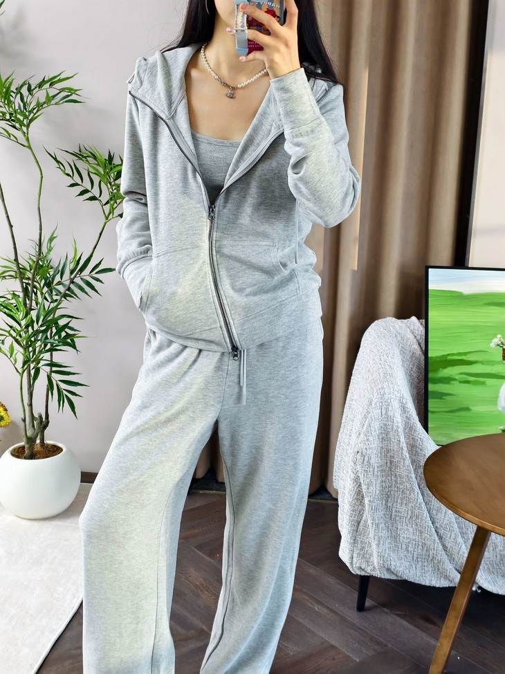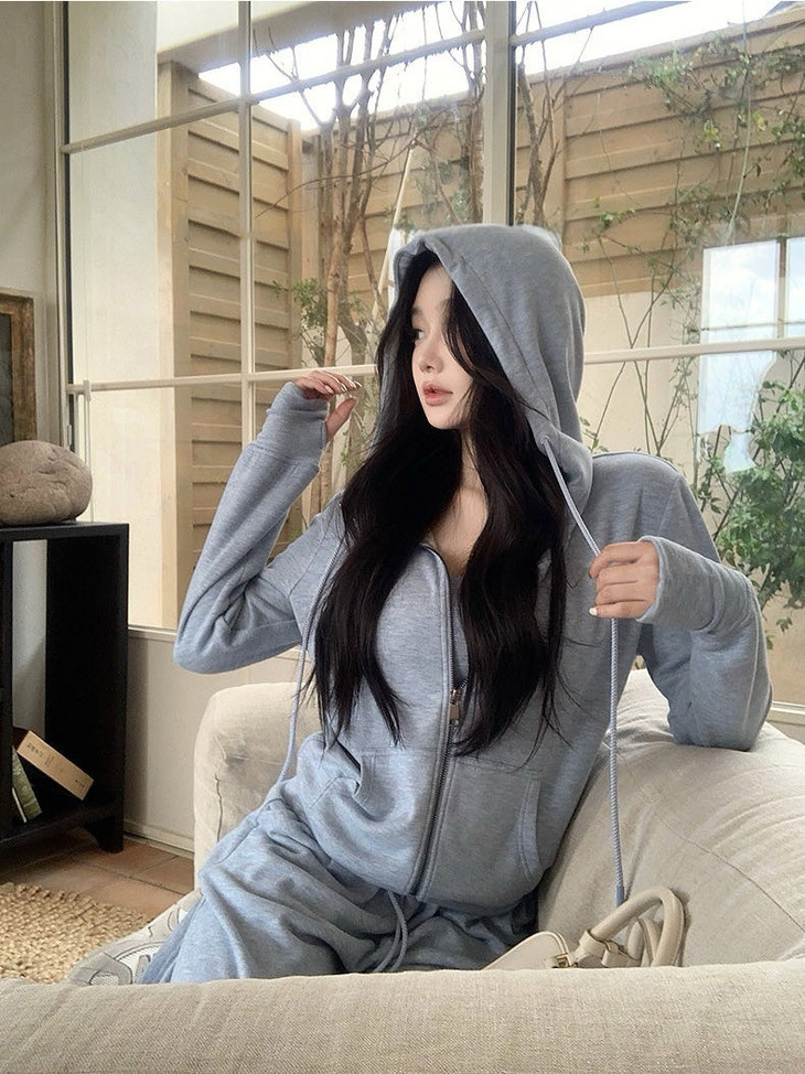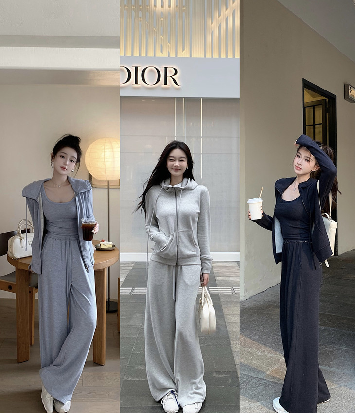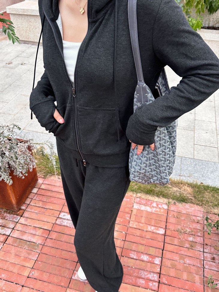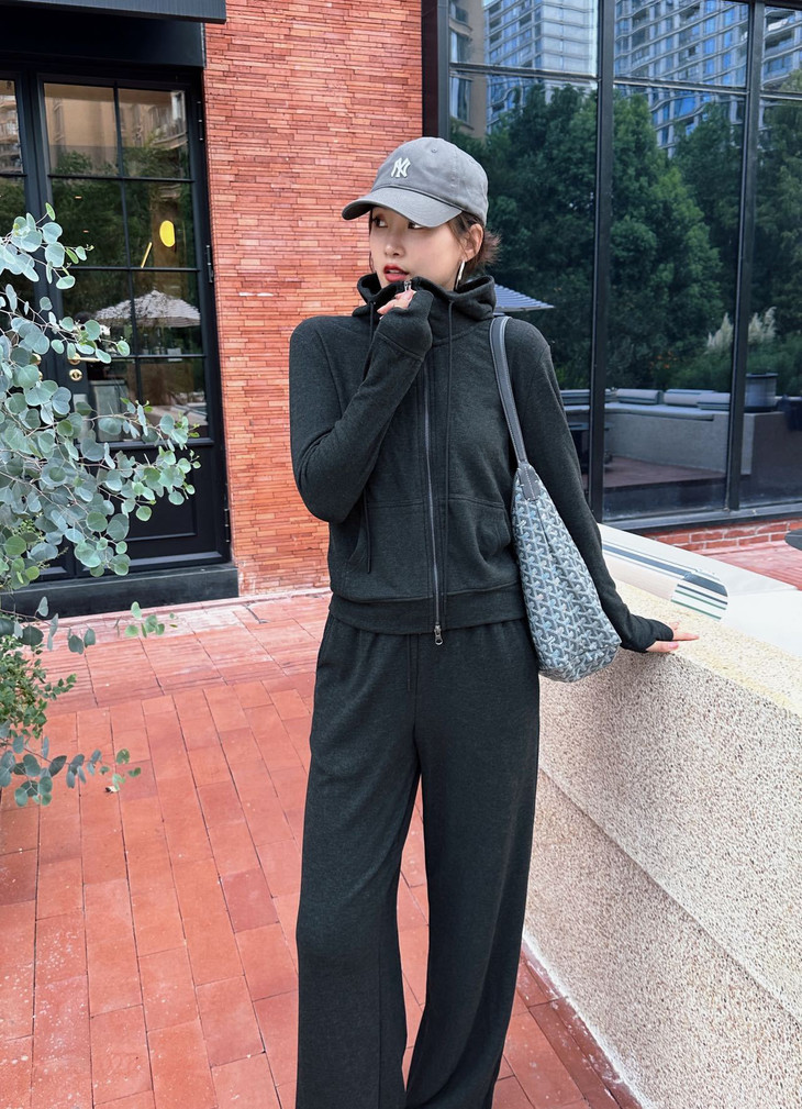 拉链卫衣外套➕直筒休闲裤组合