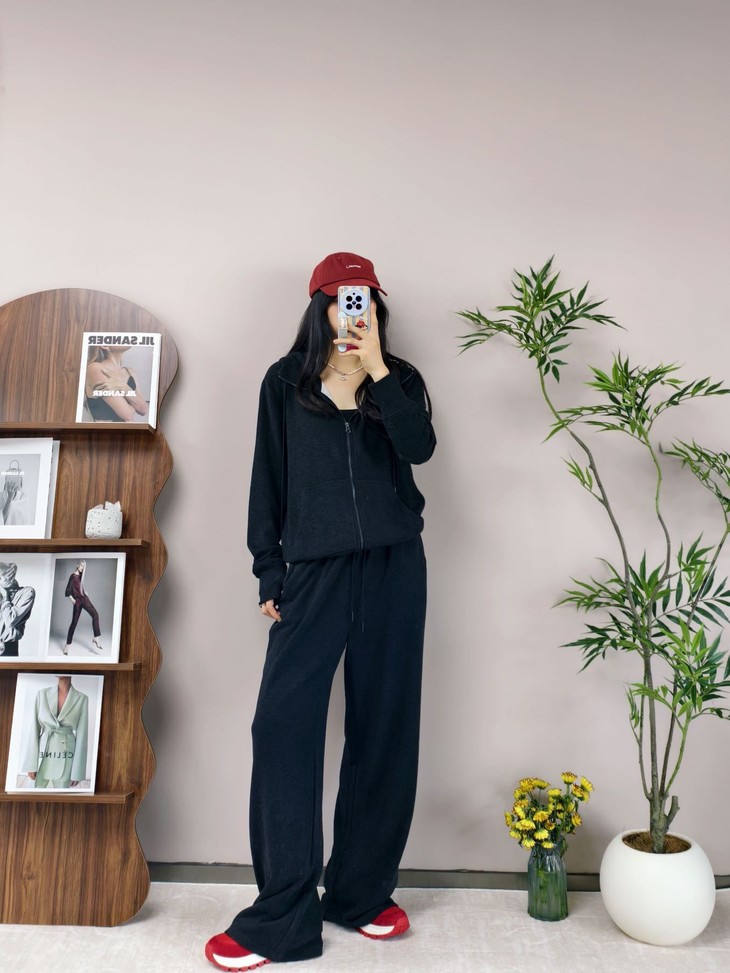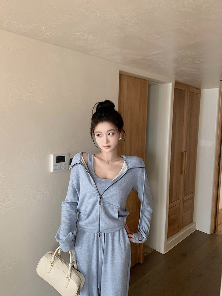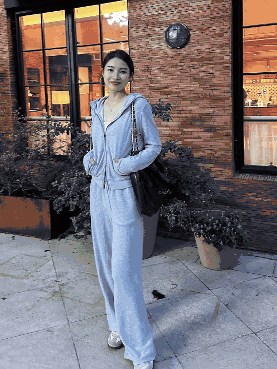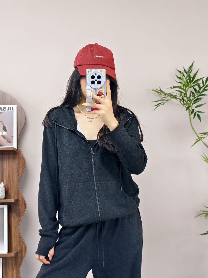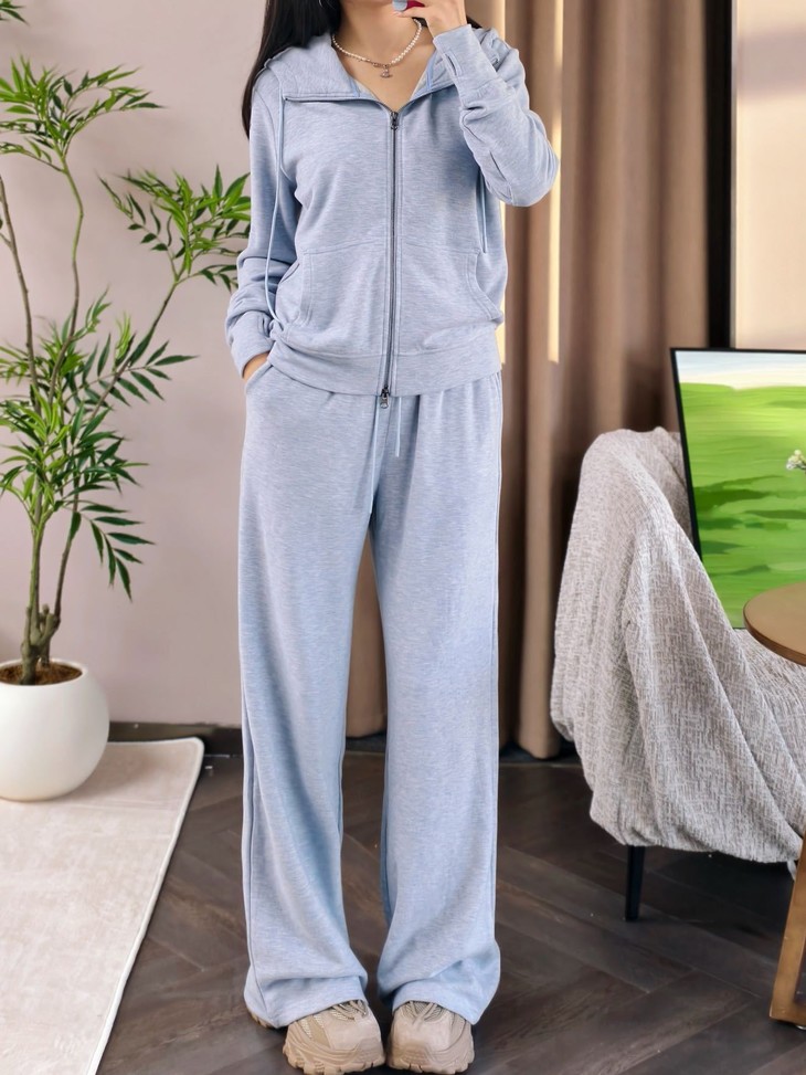 拉链卫衣外套➕直筒休闲裤组合