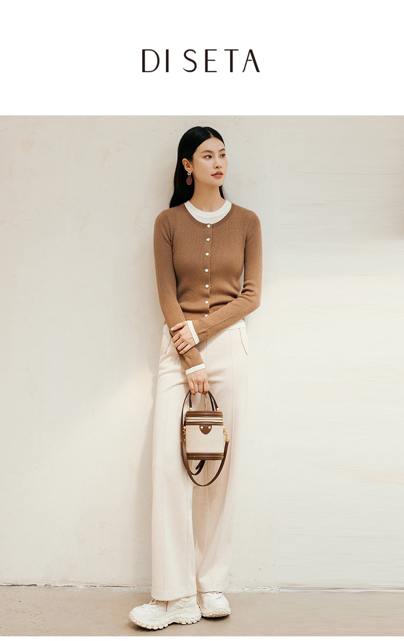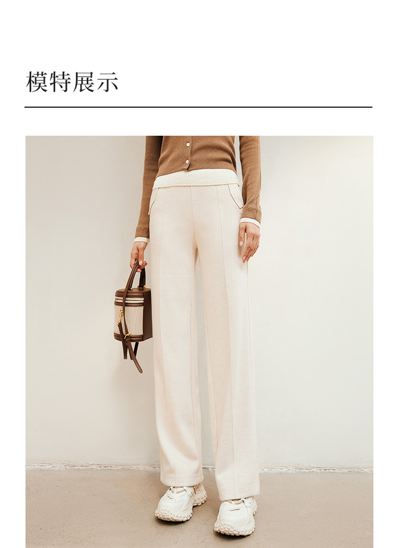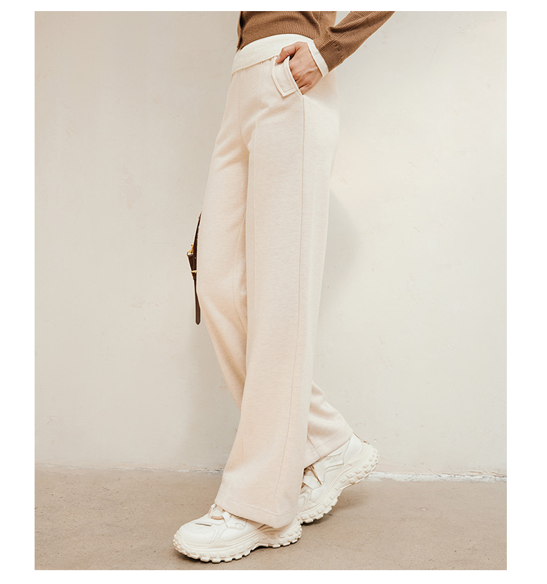 玳莎松紧腰头针织直筒裤女秋冬新款保暖舒适宽松纯色休闲裤 ED36305