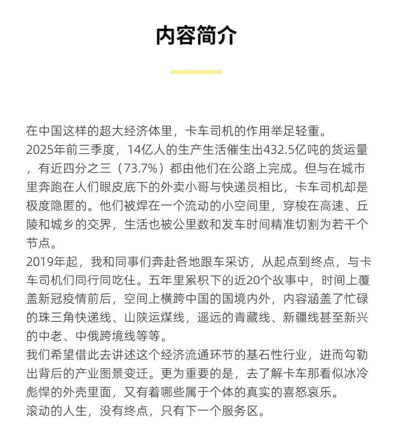 滚动的车轮:跟着卡车司机行中国 译文纪实 黄子懿/驳静/张从志 等 著 公路运输 中国社会变迁与个体命运 非虚构 上海译文出版 正版