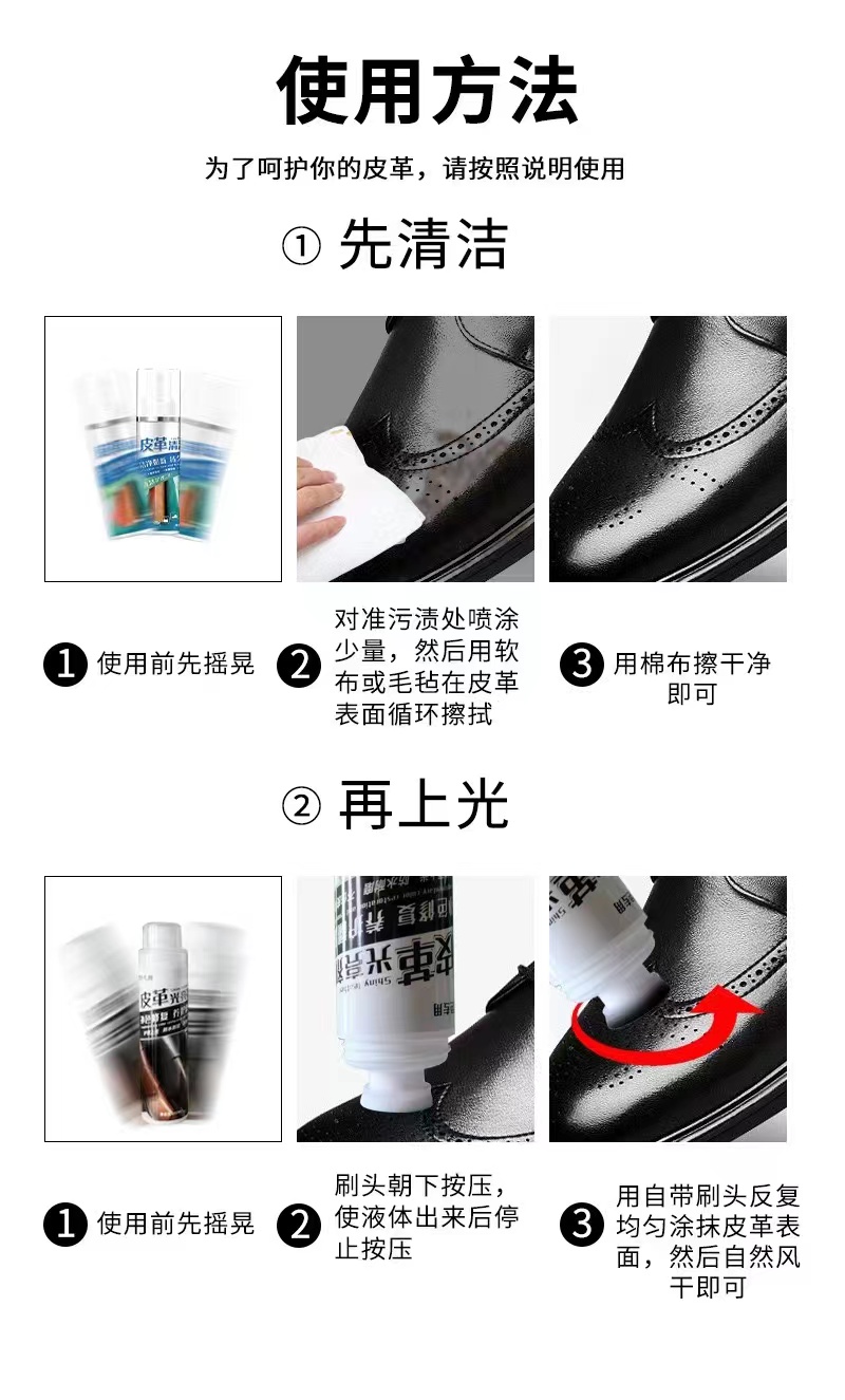 黑色光亮剂具有遮瑕的功能,皮鞋稍微有些磨损脱皮,使用后都会遮盖。