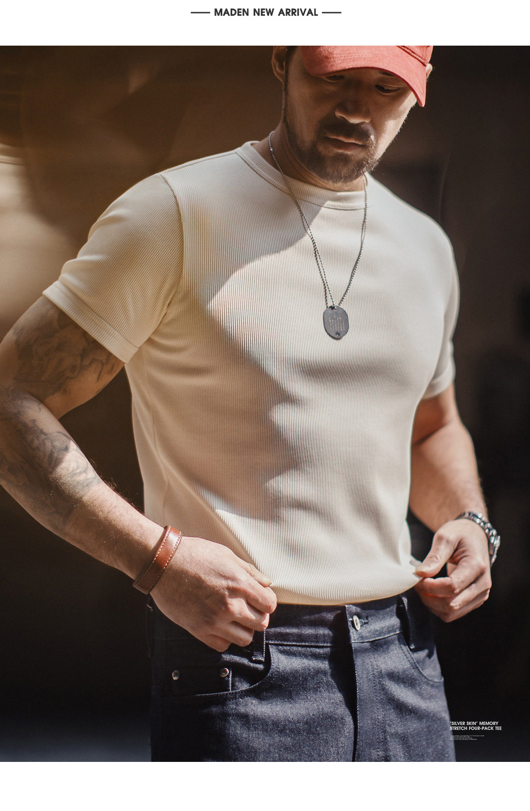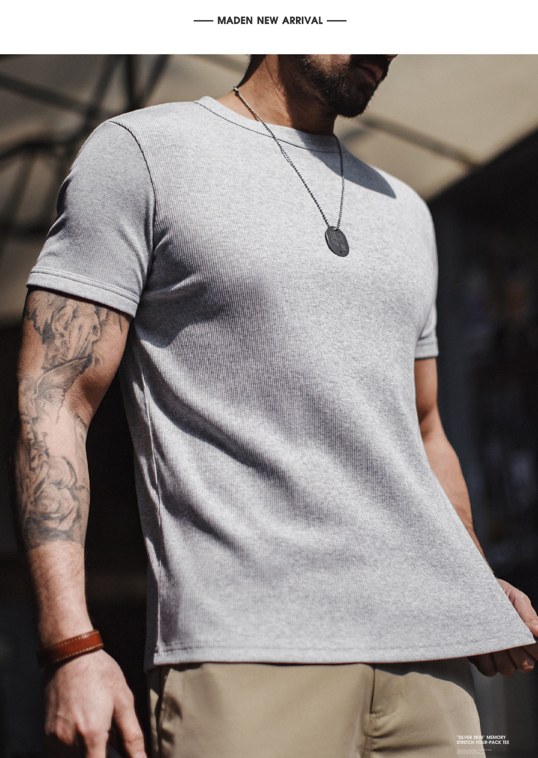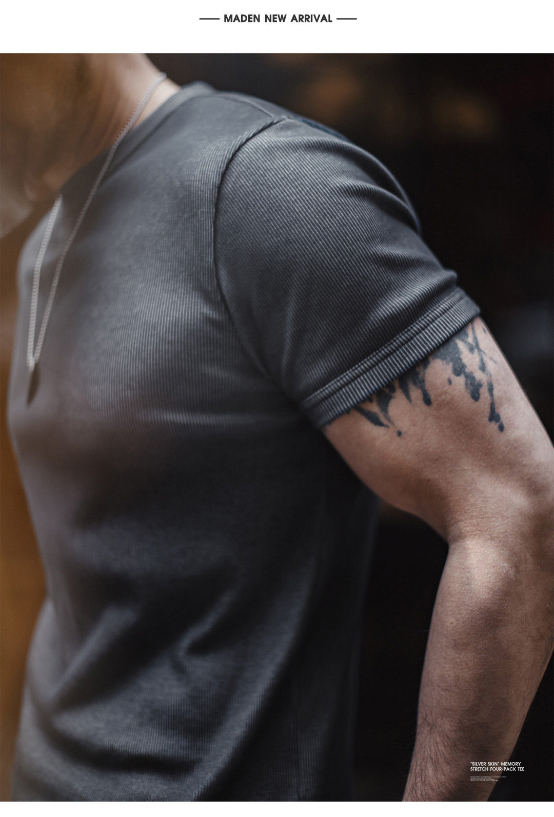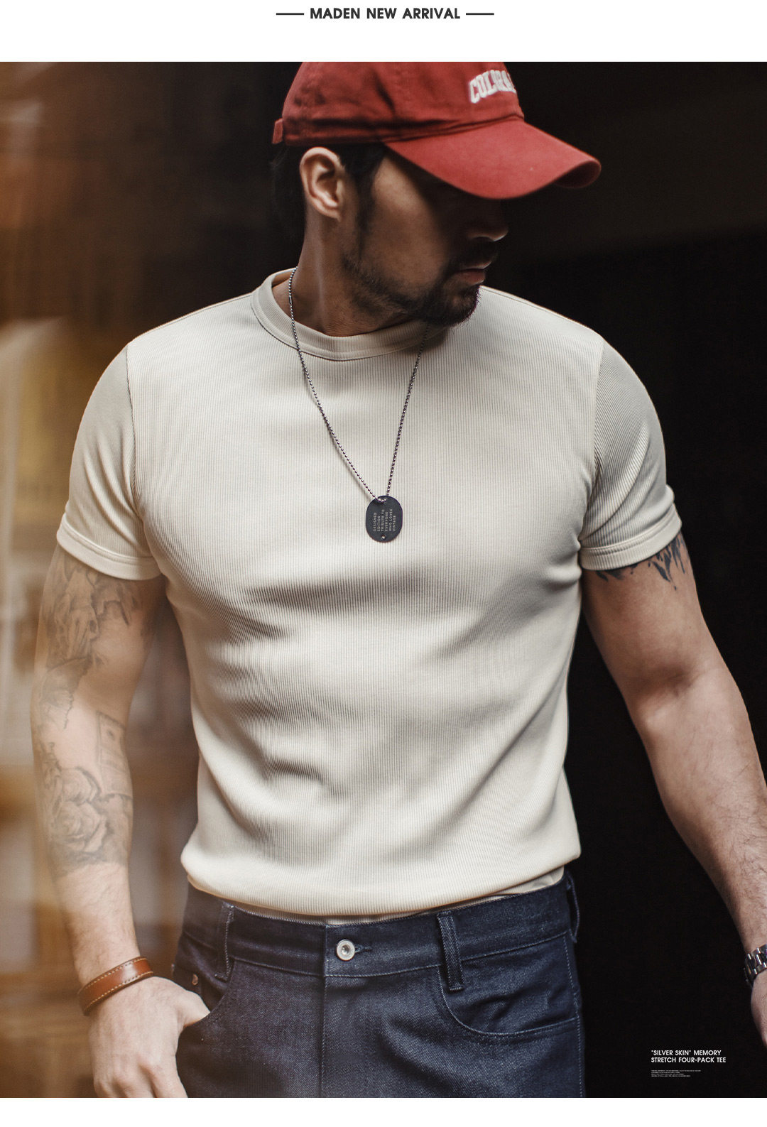 马登工装美式健身正肩收袖口短袖体能修身训练服T恤打底衫男春夏