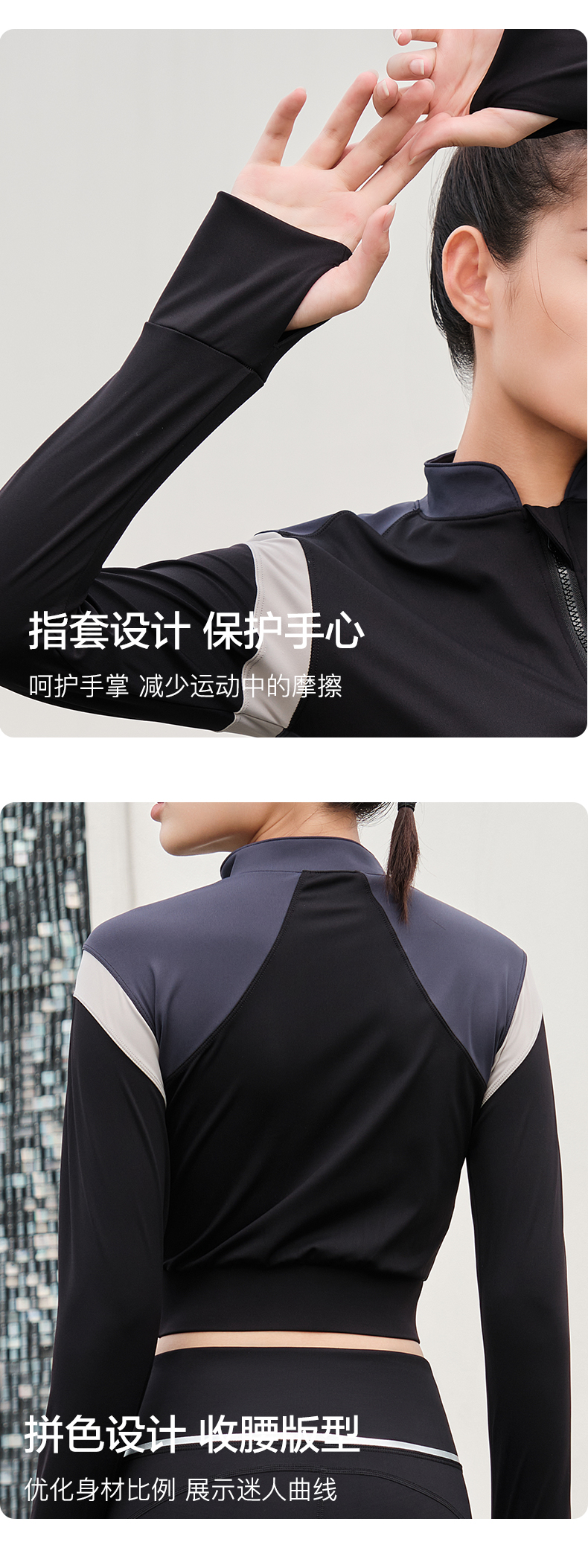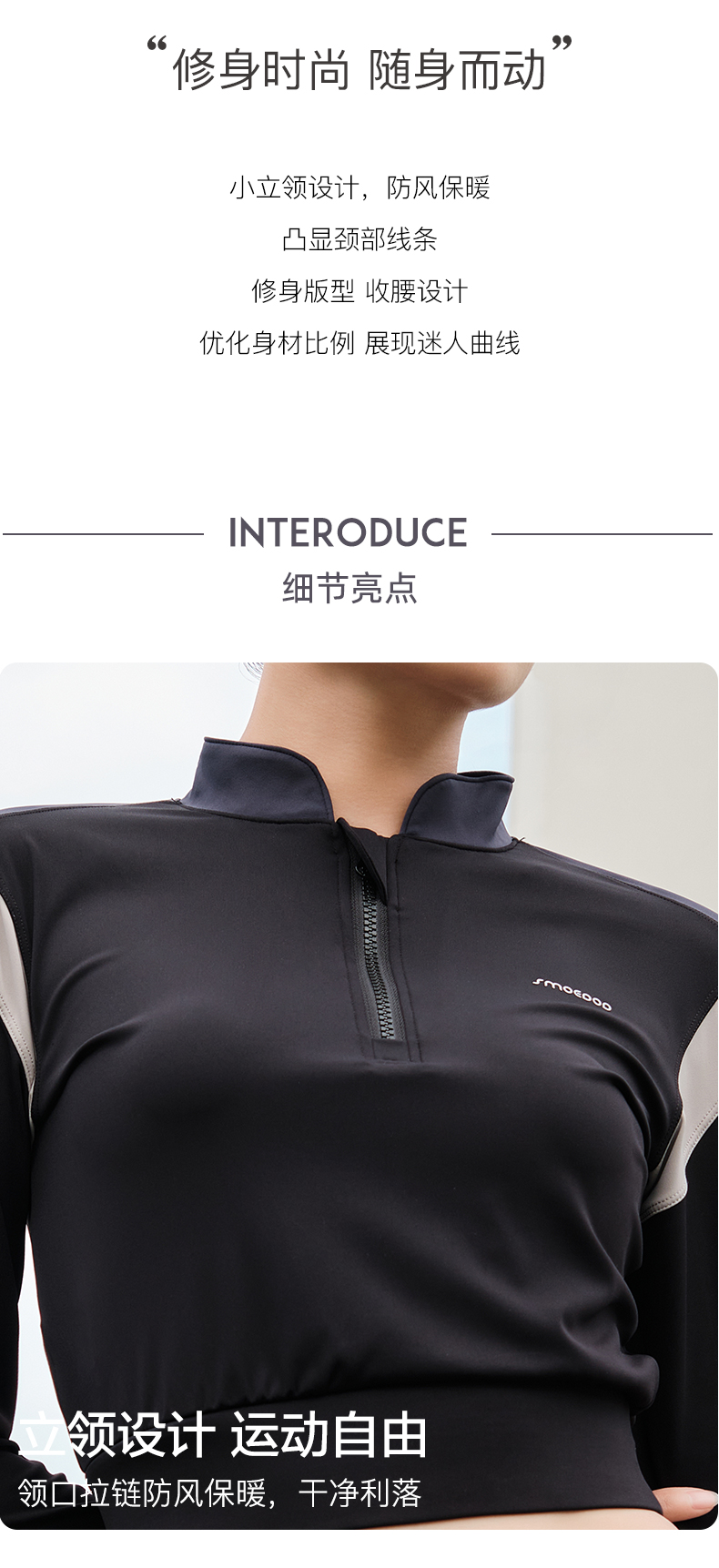 水沐伊朵女士休闲显瘦修身运动拼色立领长袖外套5932