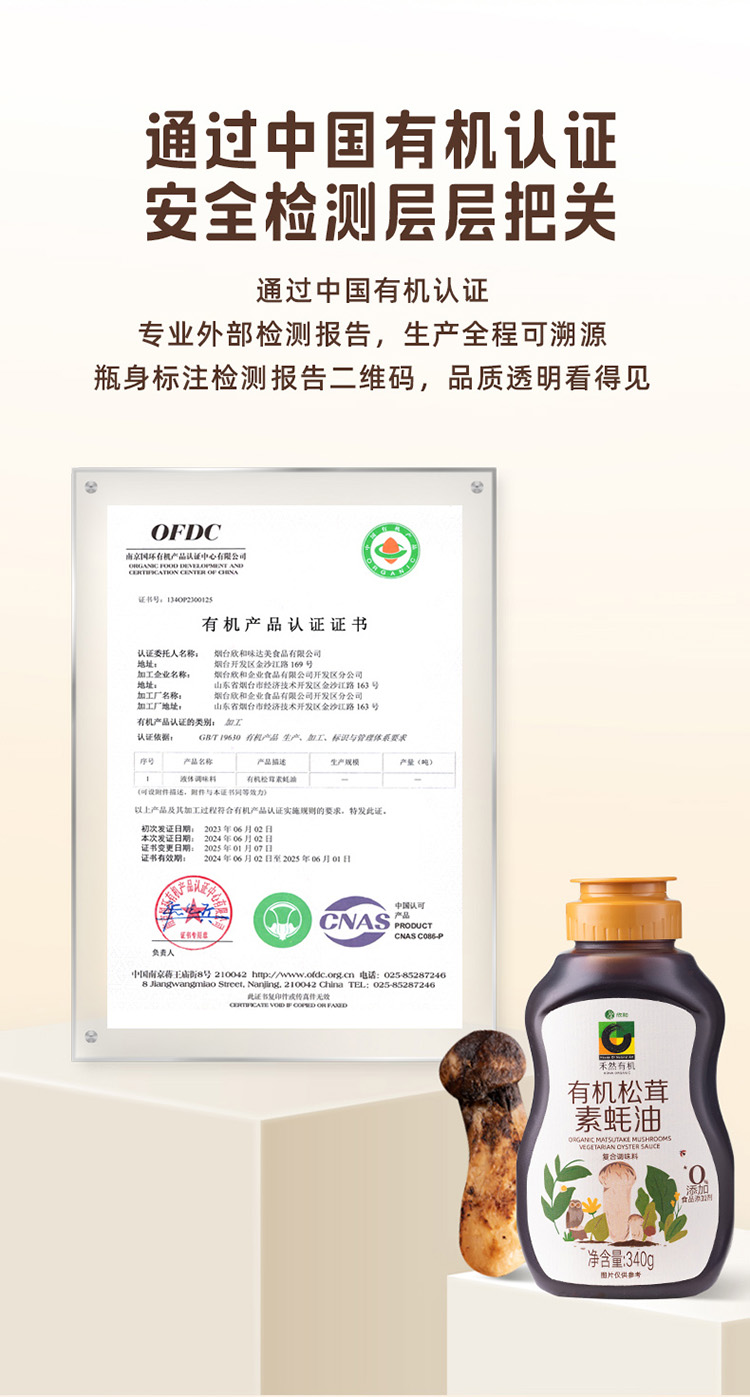 禾然有机松茸素蚝油 340g/瓶 全国配送 (偏远地区除外)