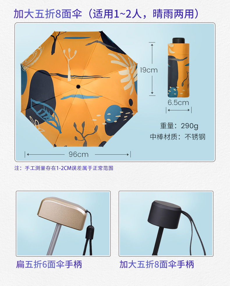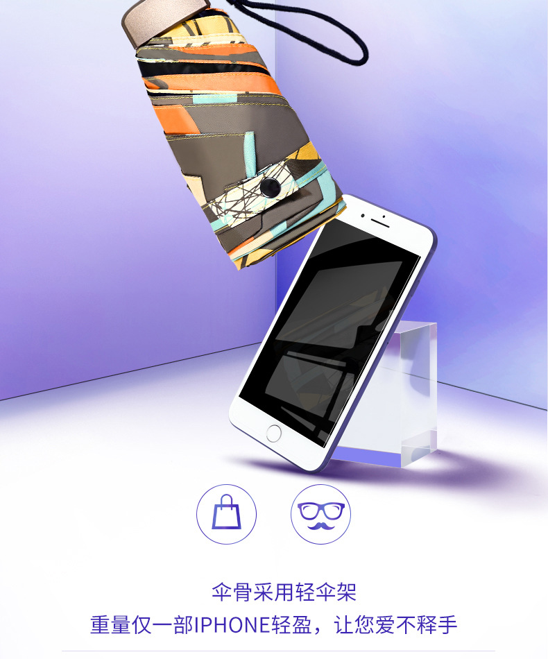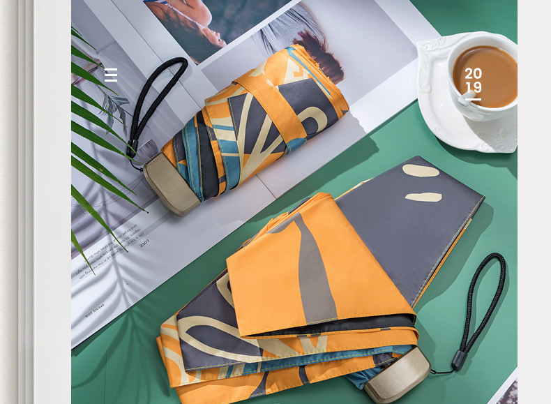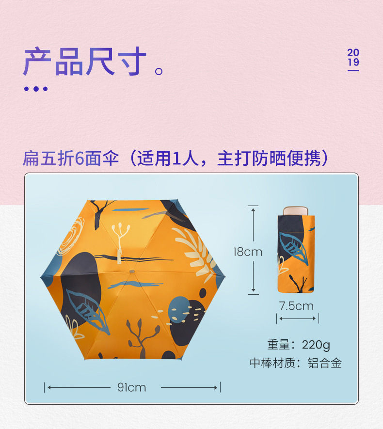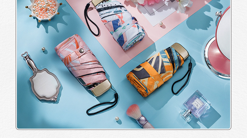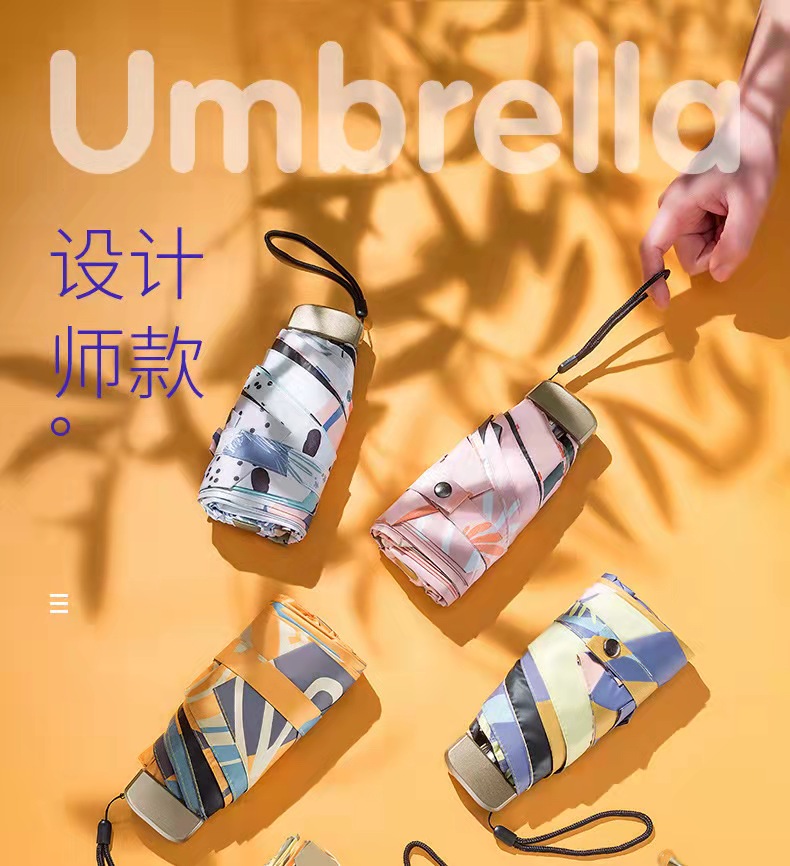 【夏日抽象艺术 轻巧便捷 防晒更有效】五折口袋晴雨伞超轻黑胶折叠遮阳防晒伞学生儿童创意广告礼品雨伞