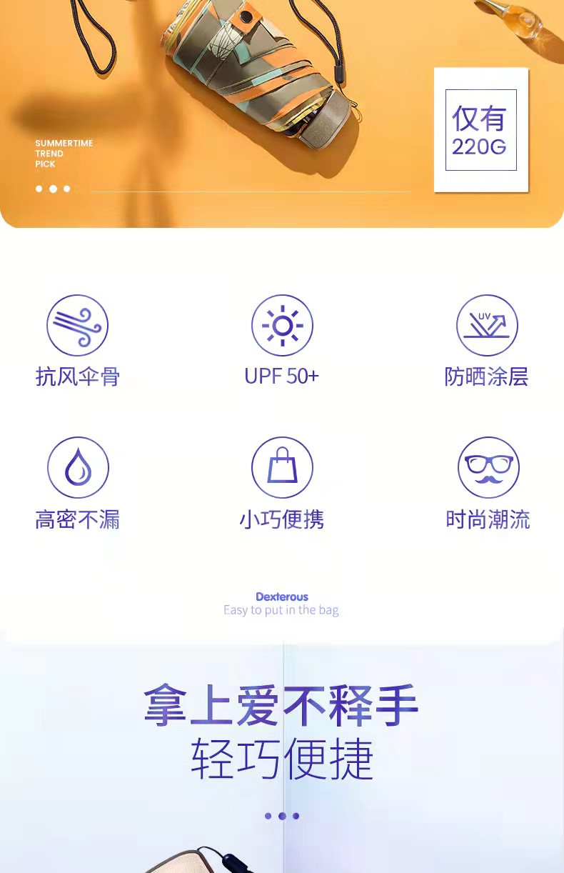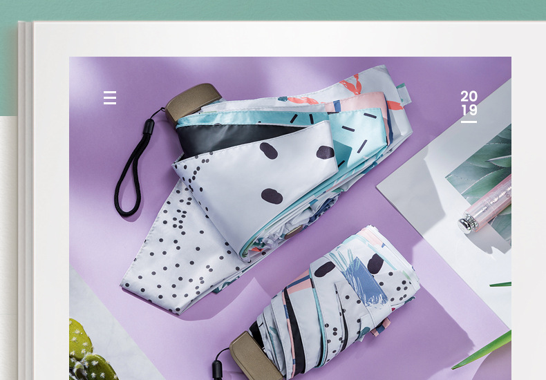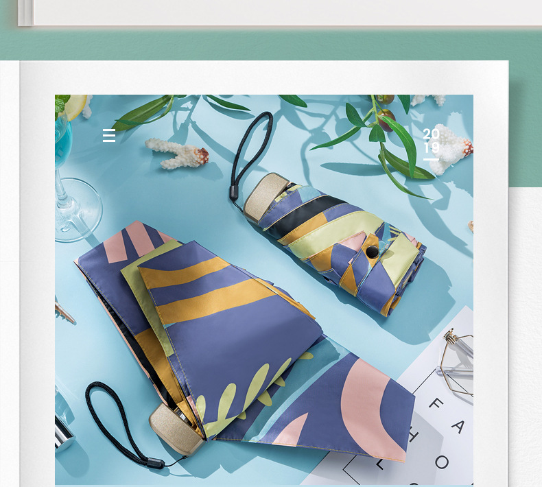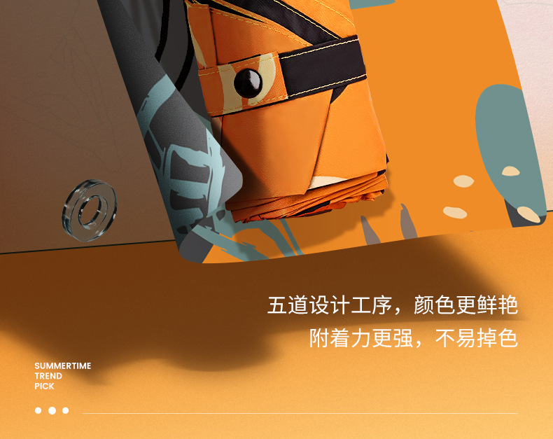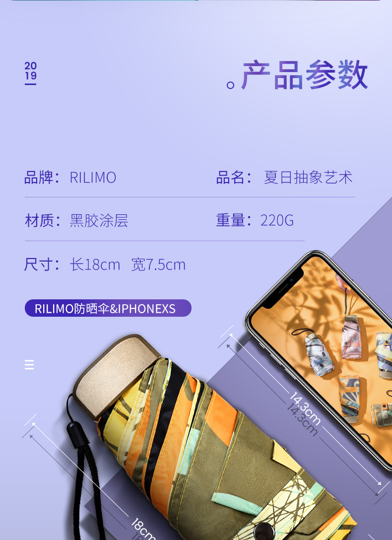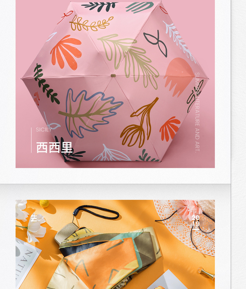 【夏日抽象艺术 轻巧便捷 防晒更有效】五折口袋晴雨伞超轻黑胶折叠遮阳防晒伞学生儿童创意广告礼品雨伞