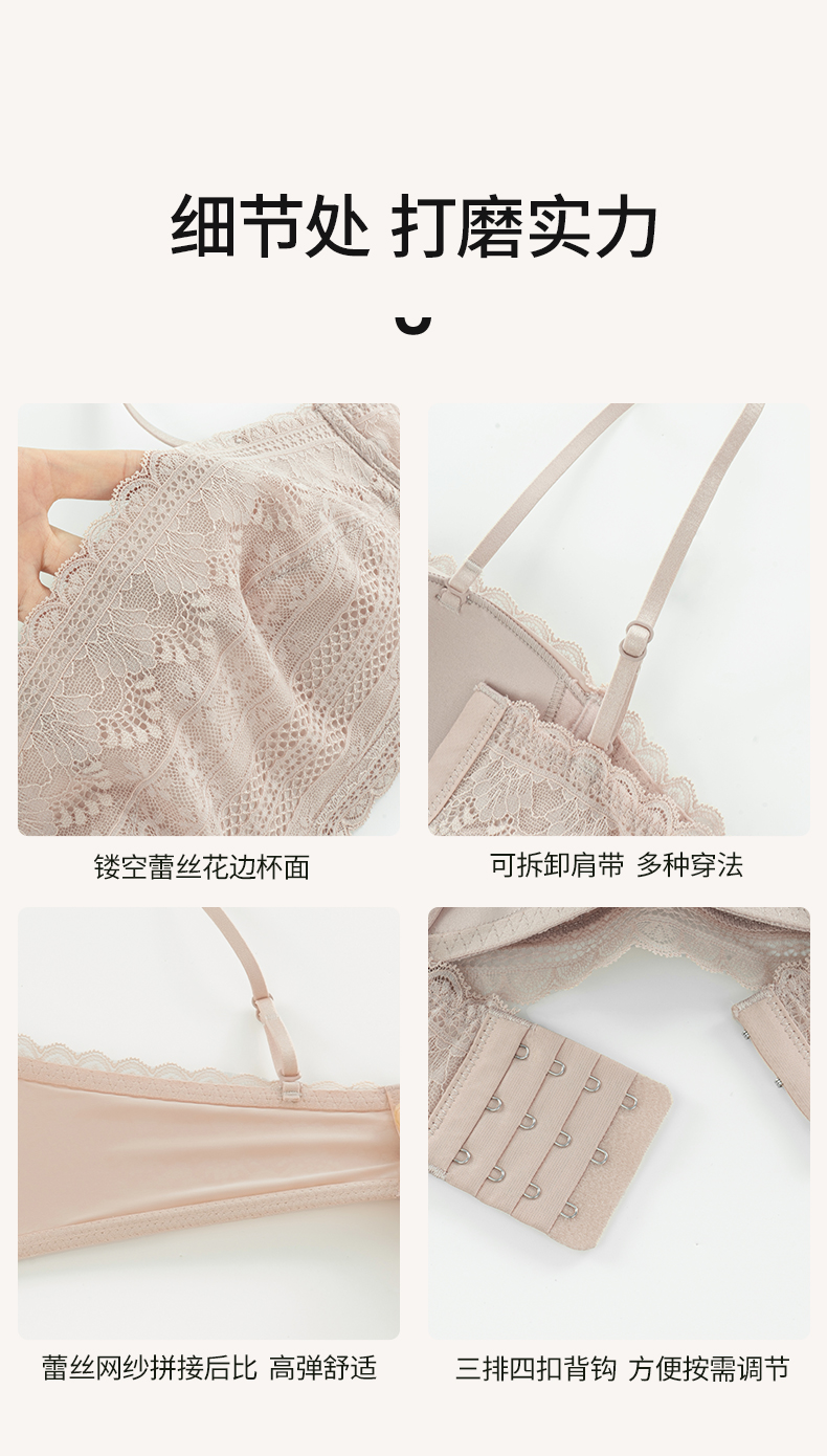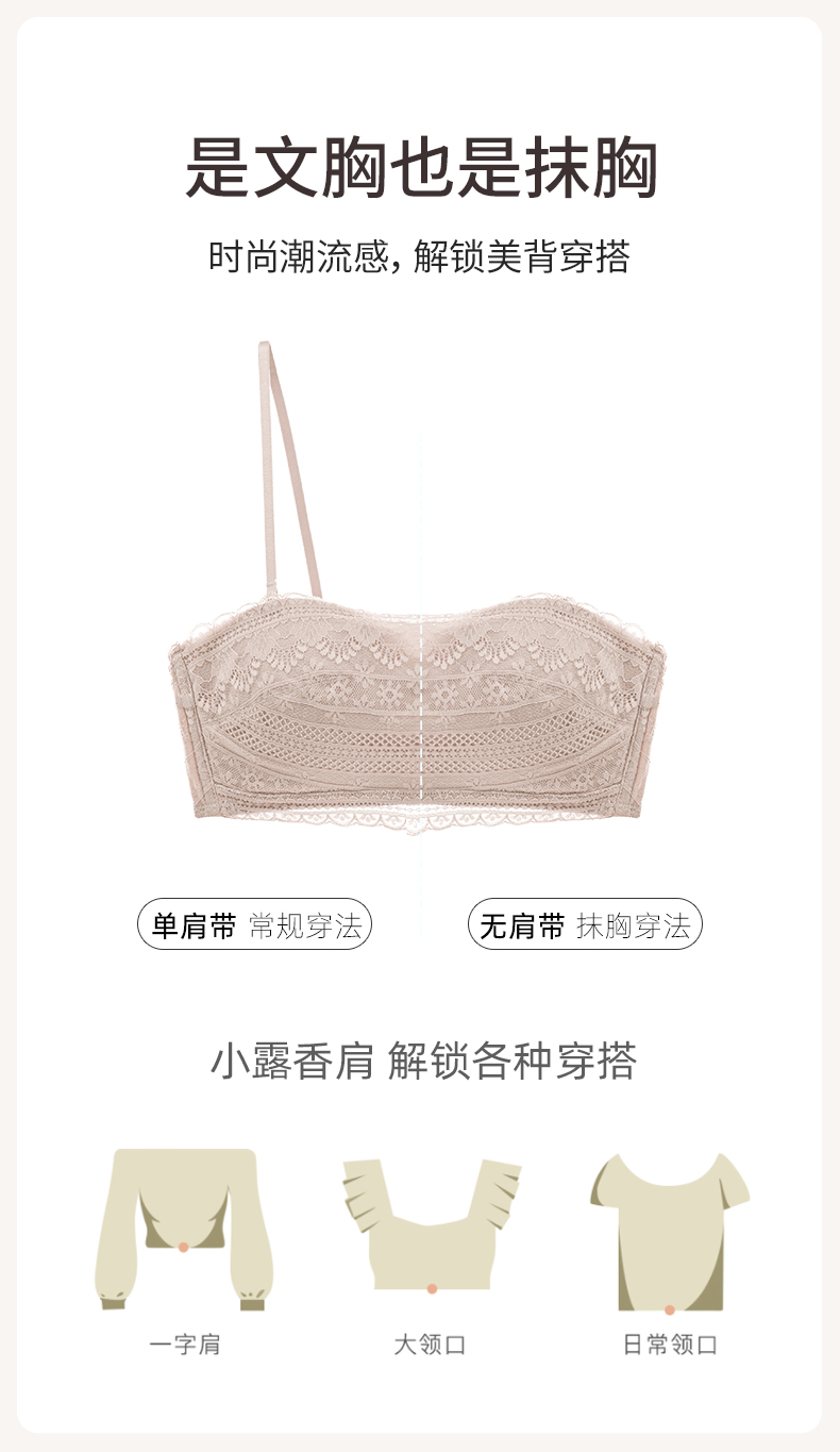 雅黛丽内衣上托防走光可拆卸肩带文胸抹胸性感蕾丝裹胸罩