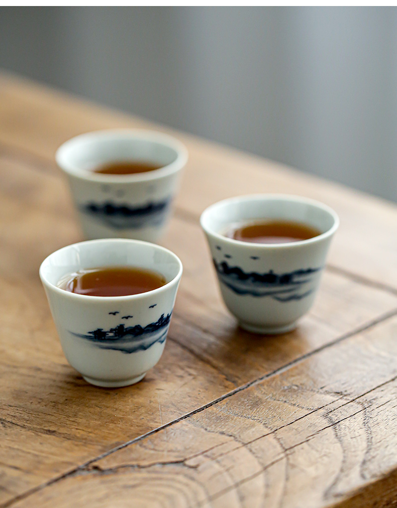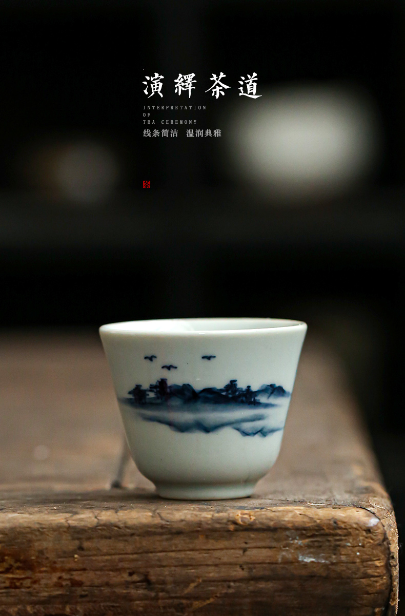 永利汇山水画羊脂玉白瓷主人杯单杯功夫茶杯纯手工陶瓷品茗杯子