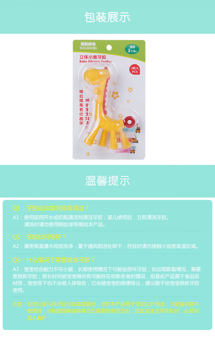 【婴儿用品】宝宝小鹿卡通造型全硅胶牙胶婴幼儿磨牙玩具磨牙胶6144