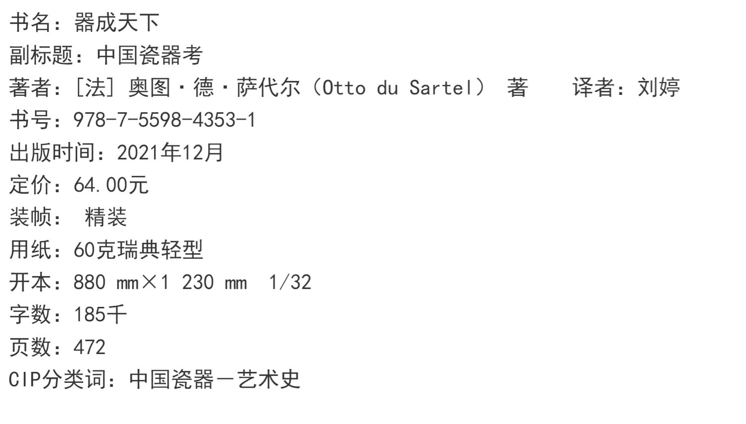 【“云端书展”专区】海外汉学译丛 器成天下:中国瓷器考 [法] 奥图·德·萨代尔(Otto du Sartel)著 刘婷/译
