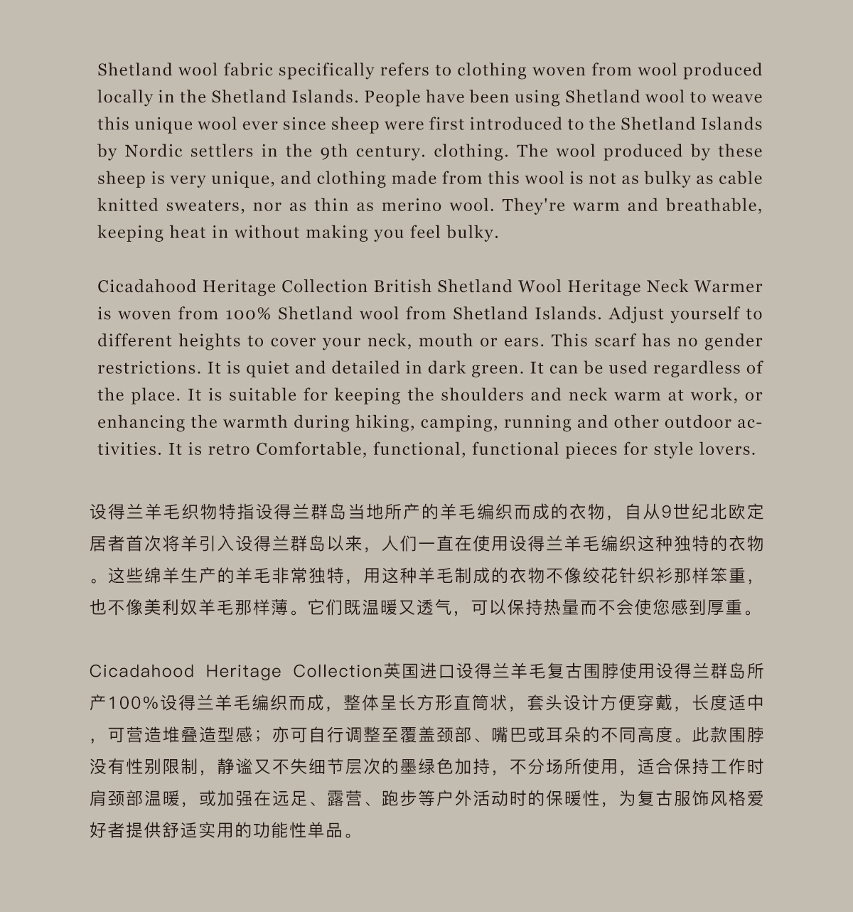 Cicadahood英国进口设得兰羊毛 复古围脖 男女款