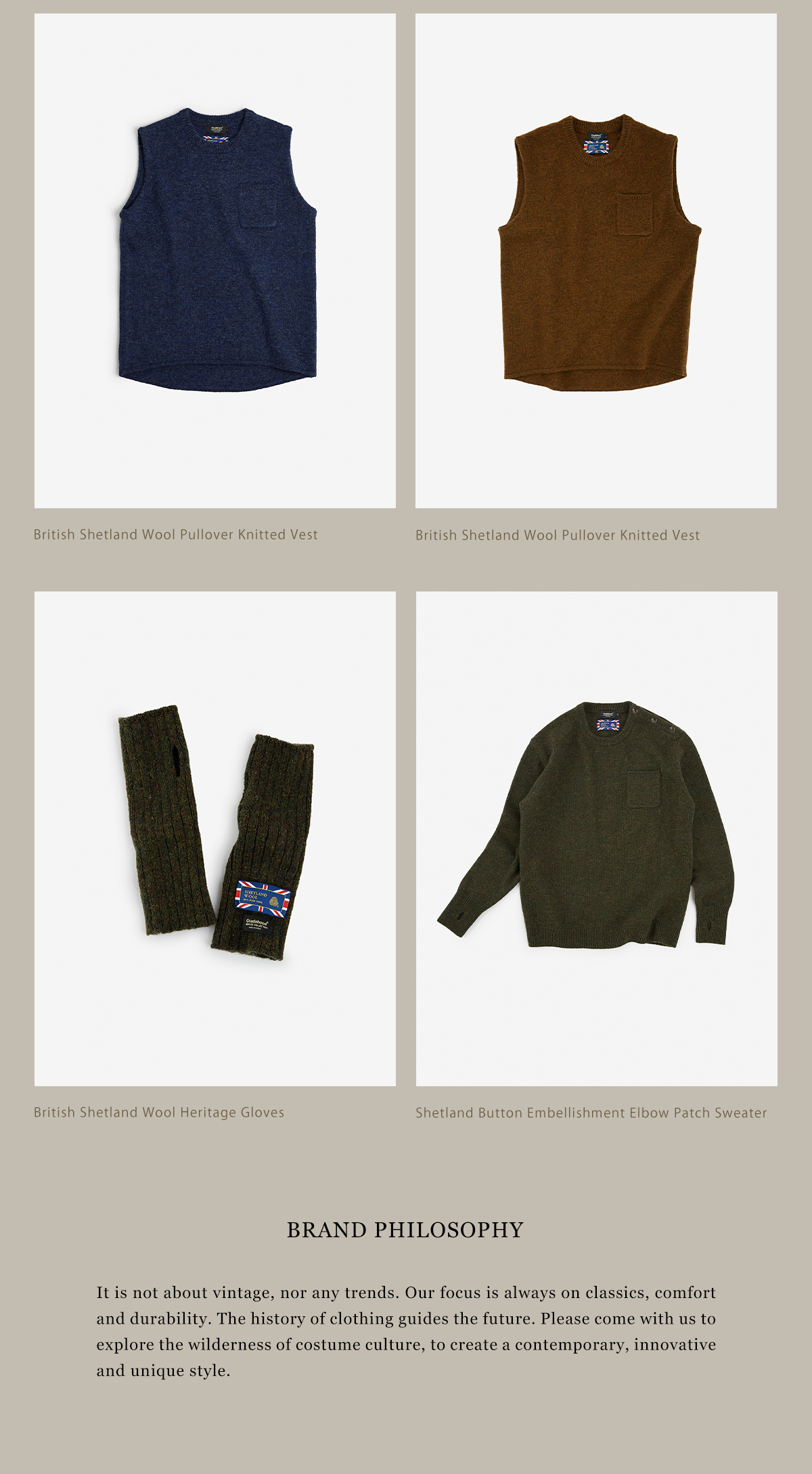 - 不局限于复古,更不会逐流于潮流,我们想挣脱快世界,关注永恒的经典、舒适和耐用,用对物质的极致追求,在荒芜之地饱满我们的内心,缓慢地得到一样东西是一种恩赐,品位从来不是速度与激情的产物。