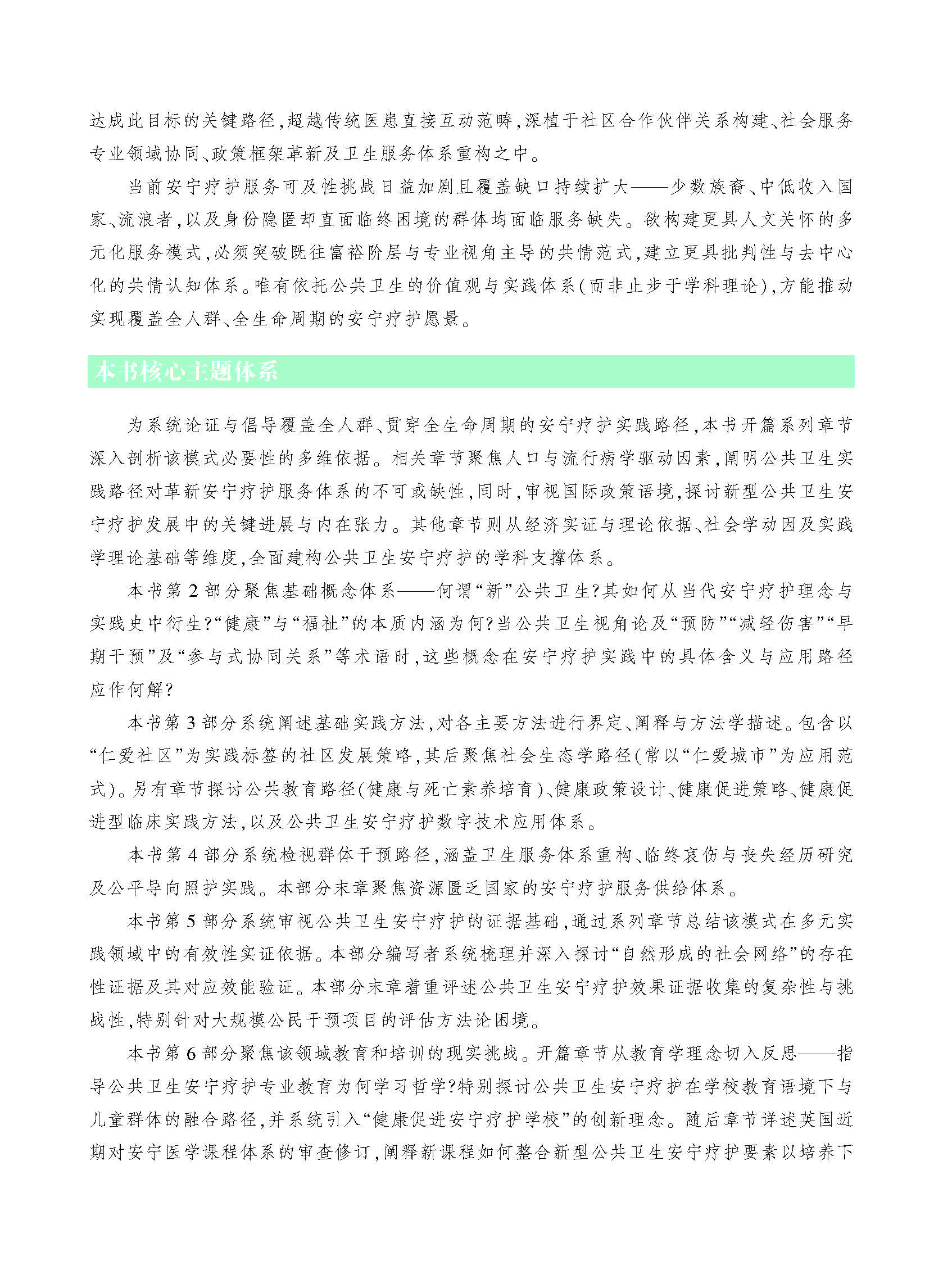 公共卫生领域权威著作,系统阐述了安宁疗护的理论、实践和政策,深入探讨了安宁疗护领域的核心问题。