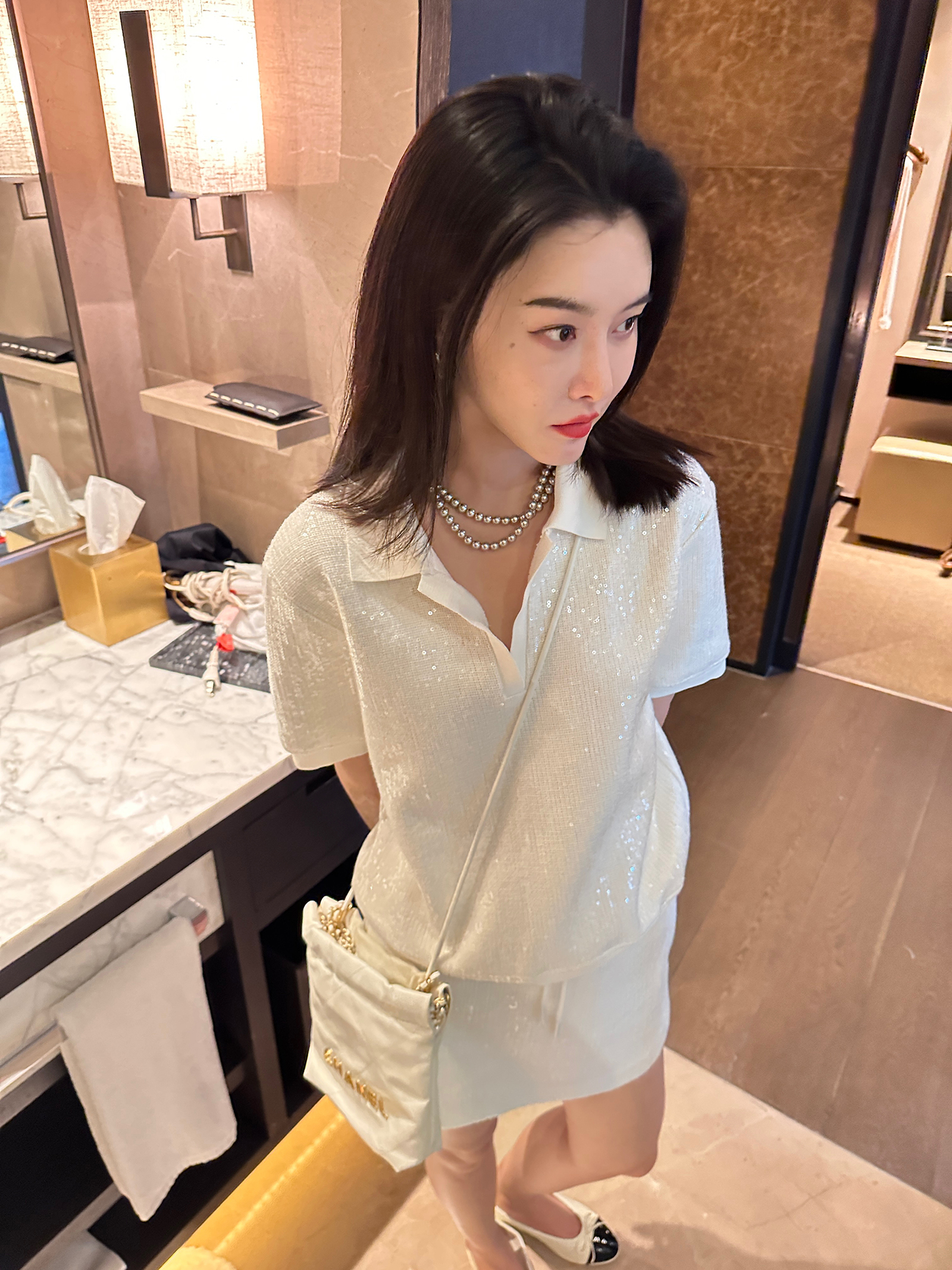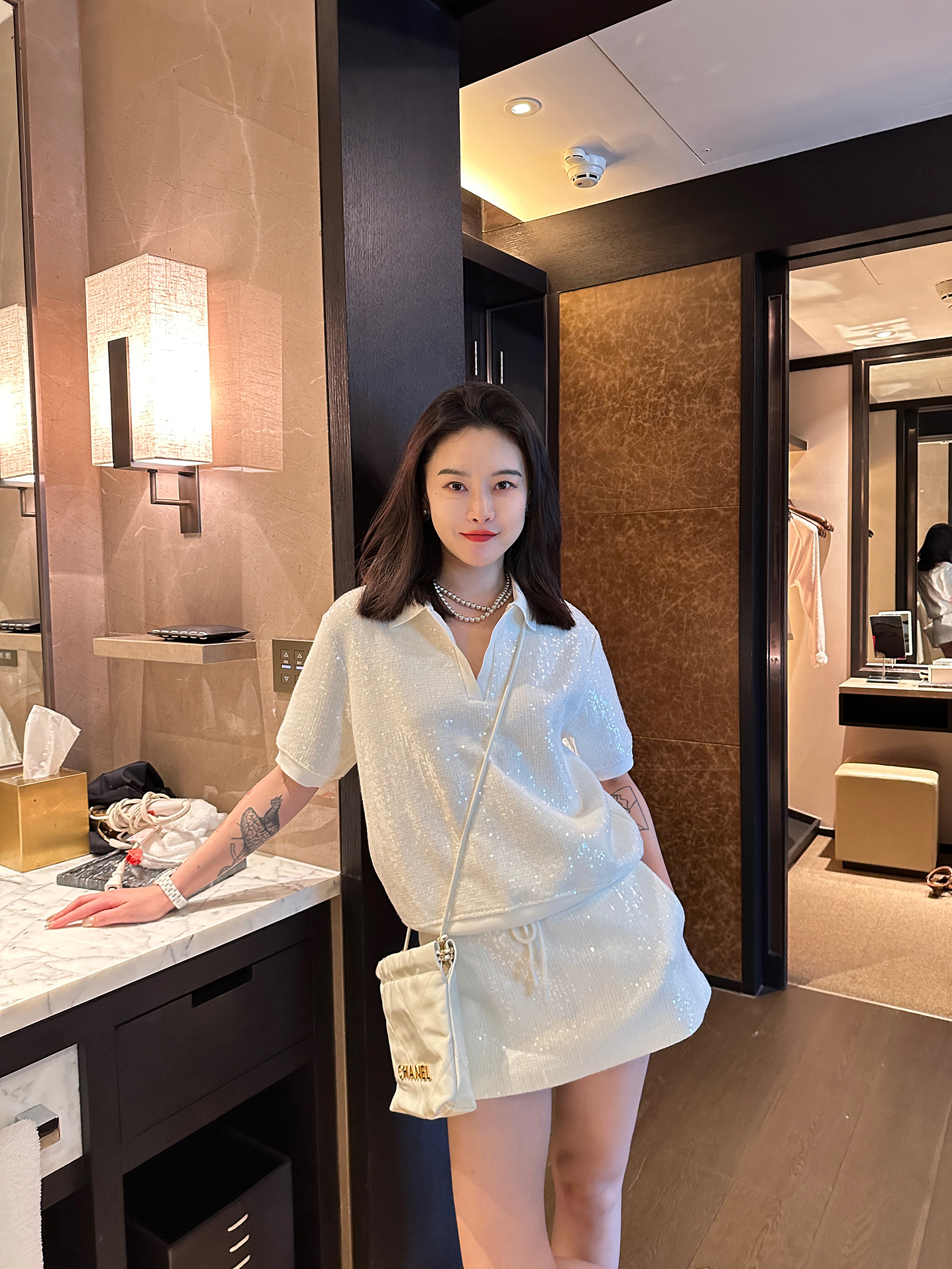 DUO智仙生黑标千金运动风/白雪堡垒亮片针织POLO衫和运动辣妹短裙