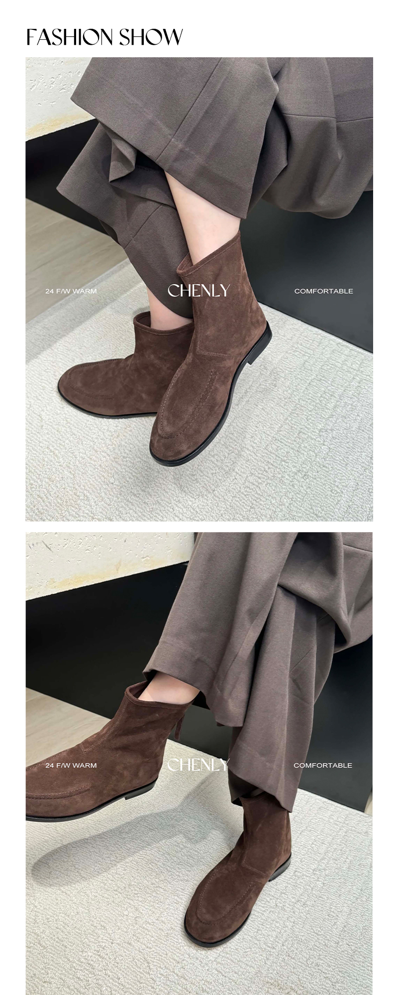 尘衣|极简短筒复古小圆头短靴