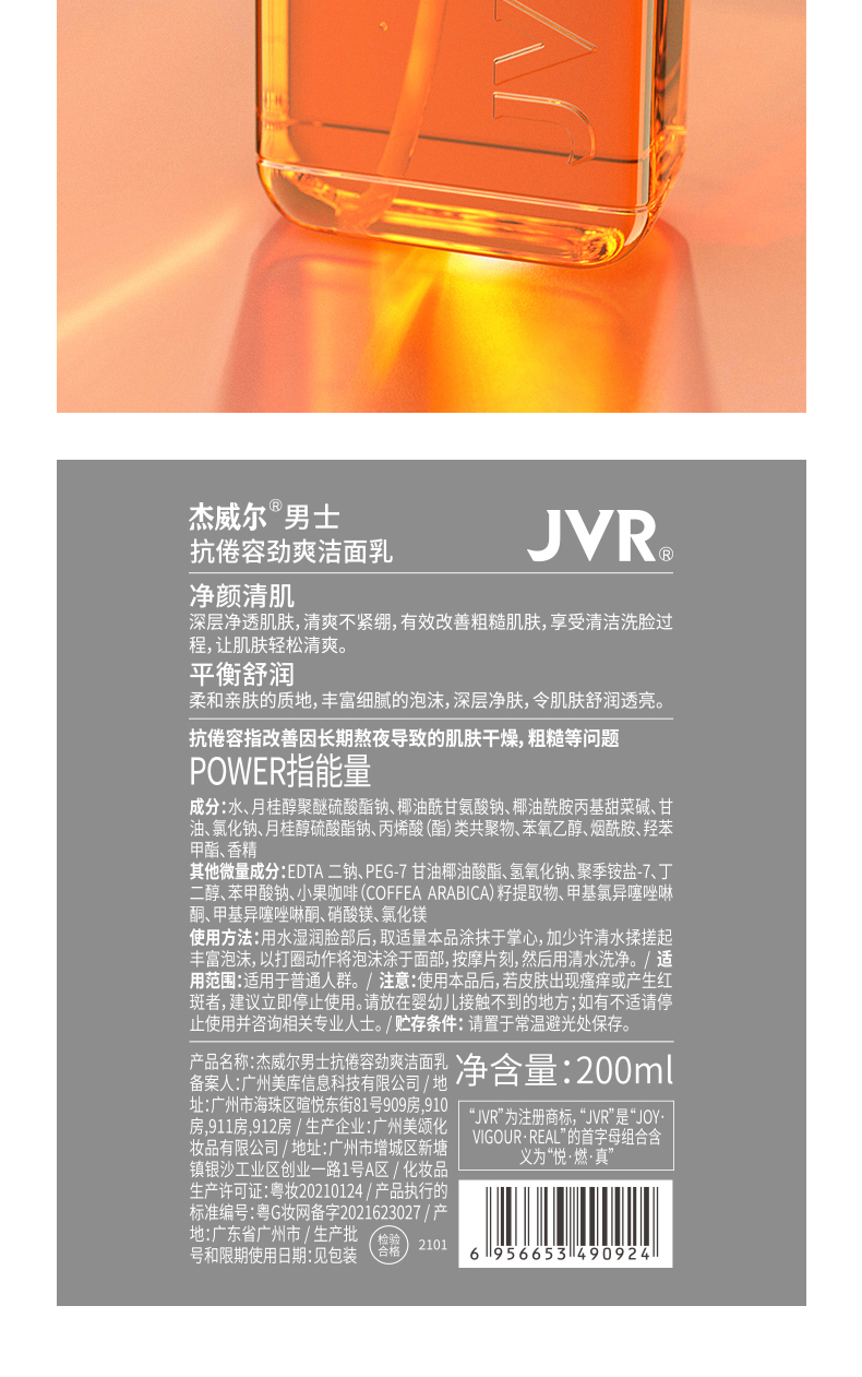 杰威尔男士洁面乳控油洗面奶清洁毛孔洁面膏青少年可用护肤品夏