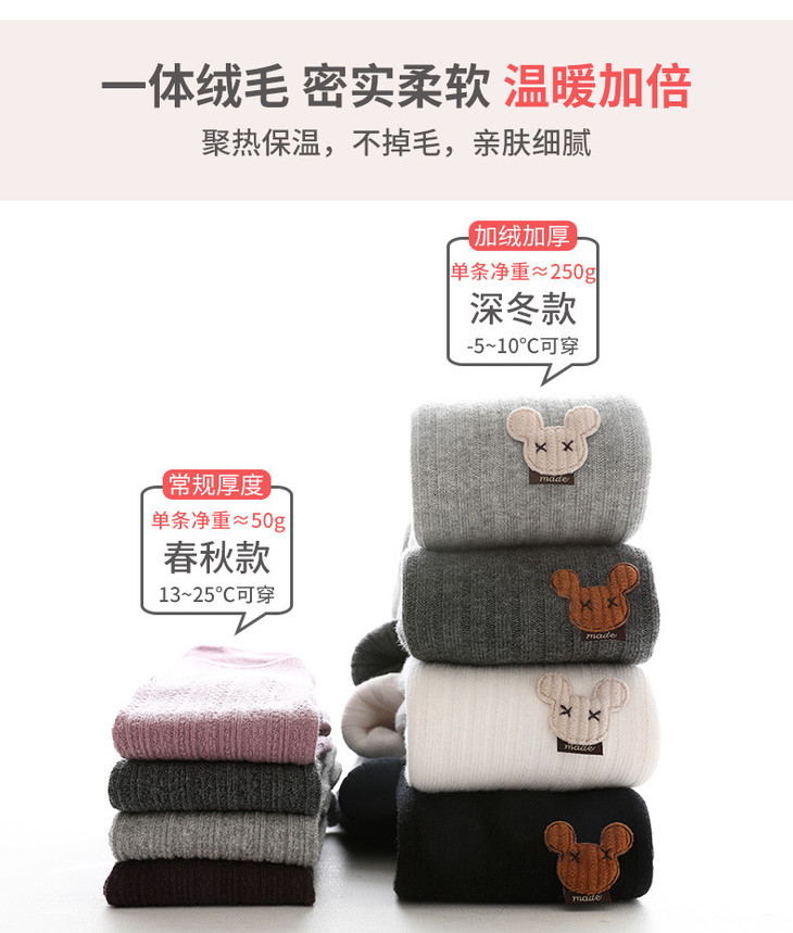 【秋冬新款宝宝打底裤】加绒加厚配饰婴儿连裤袜儿童裤子加厚保暖裤
