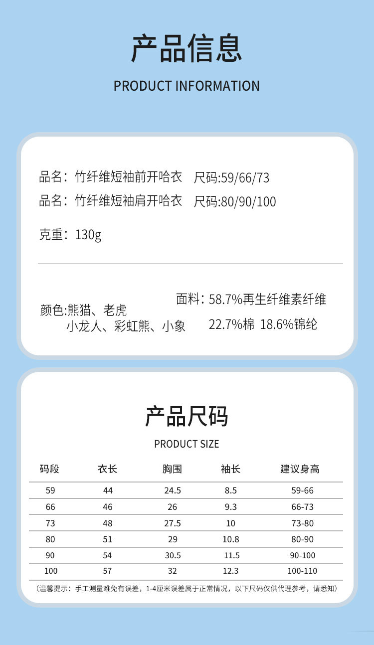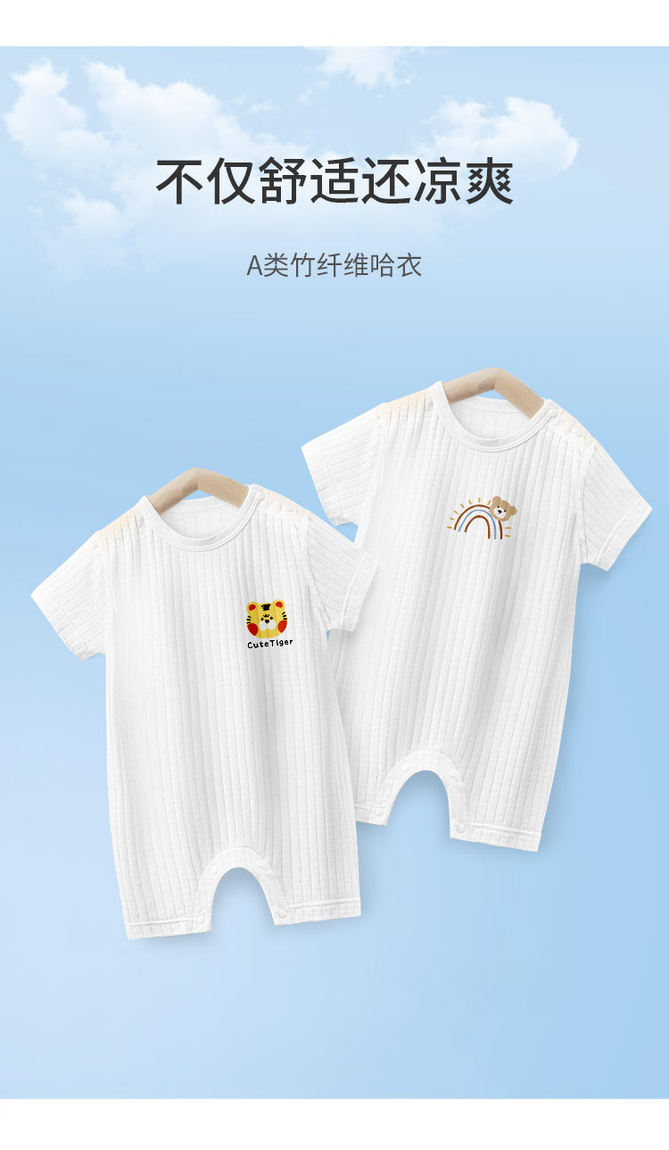 【新生儿竹纤维短袖肩开哈衣】爬服婴儿夏季连体衣新款透气空调服批发