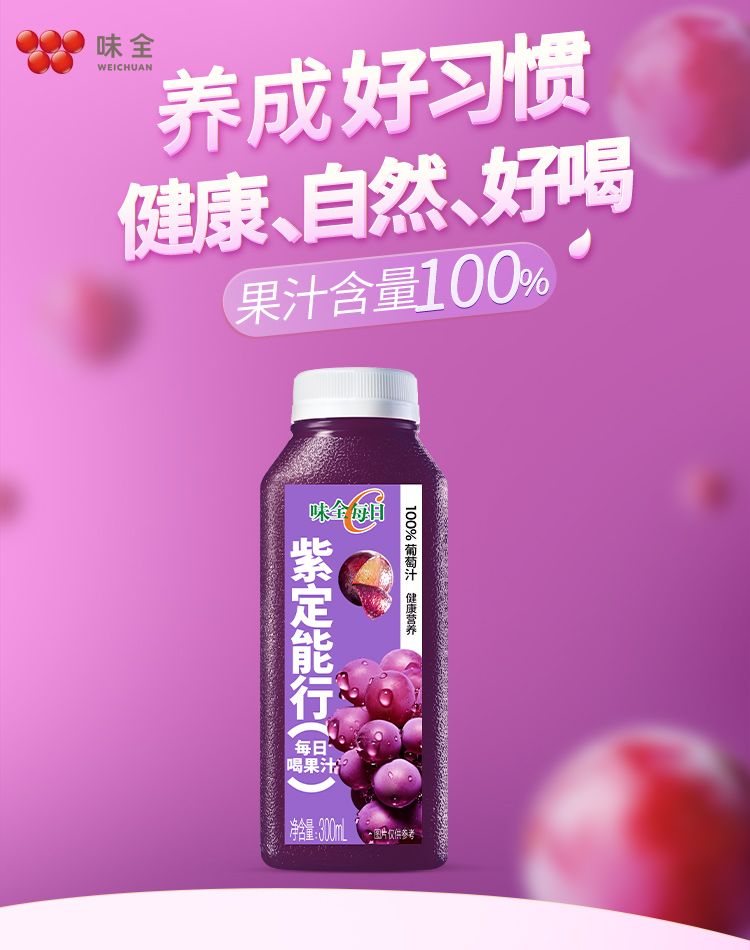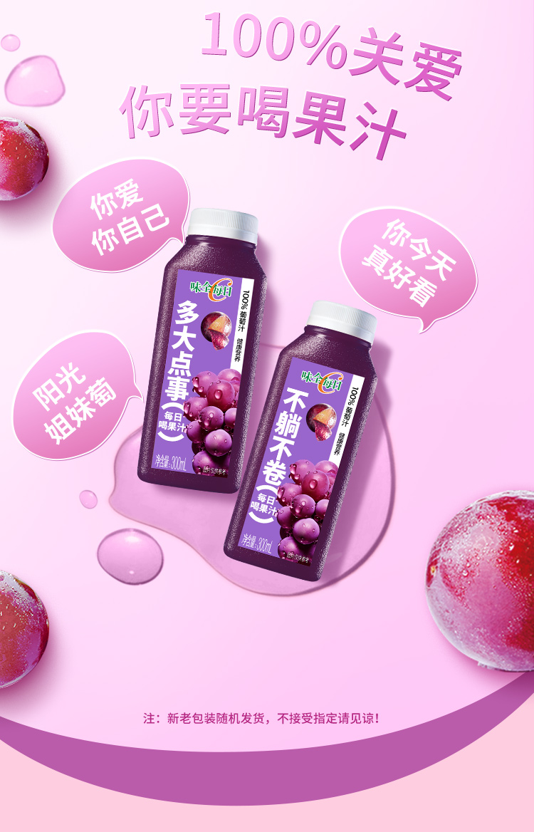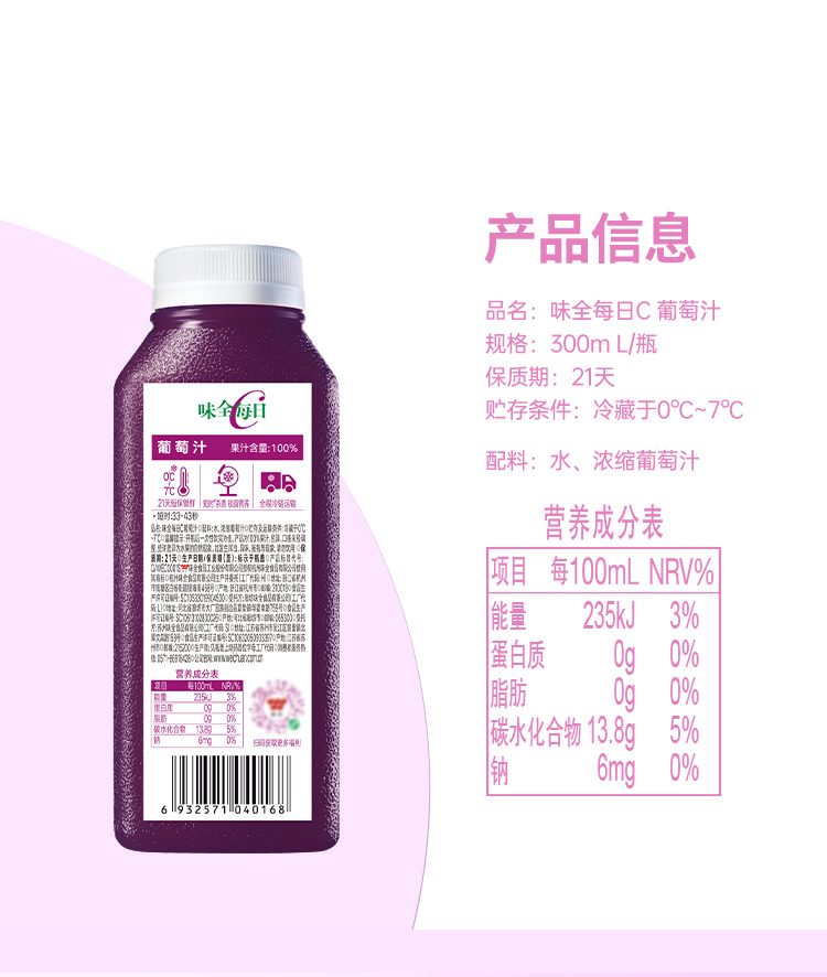 味全每日C葡萄汁瓶装300ml,保质期21天