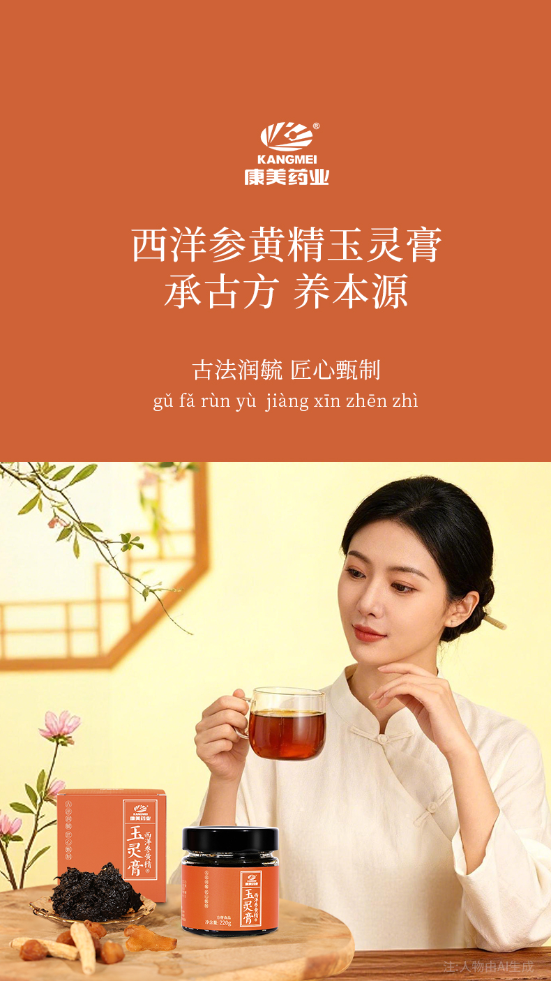 康美西洋参黄精玉灵膏220g 古法蒸制黄精养生膏泡水温养送礼