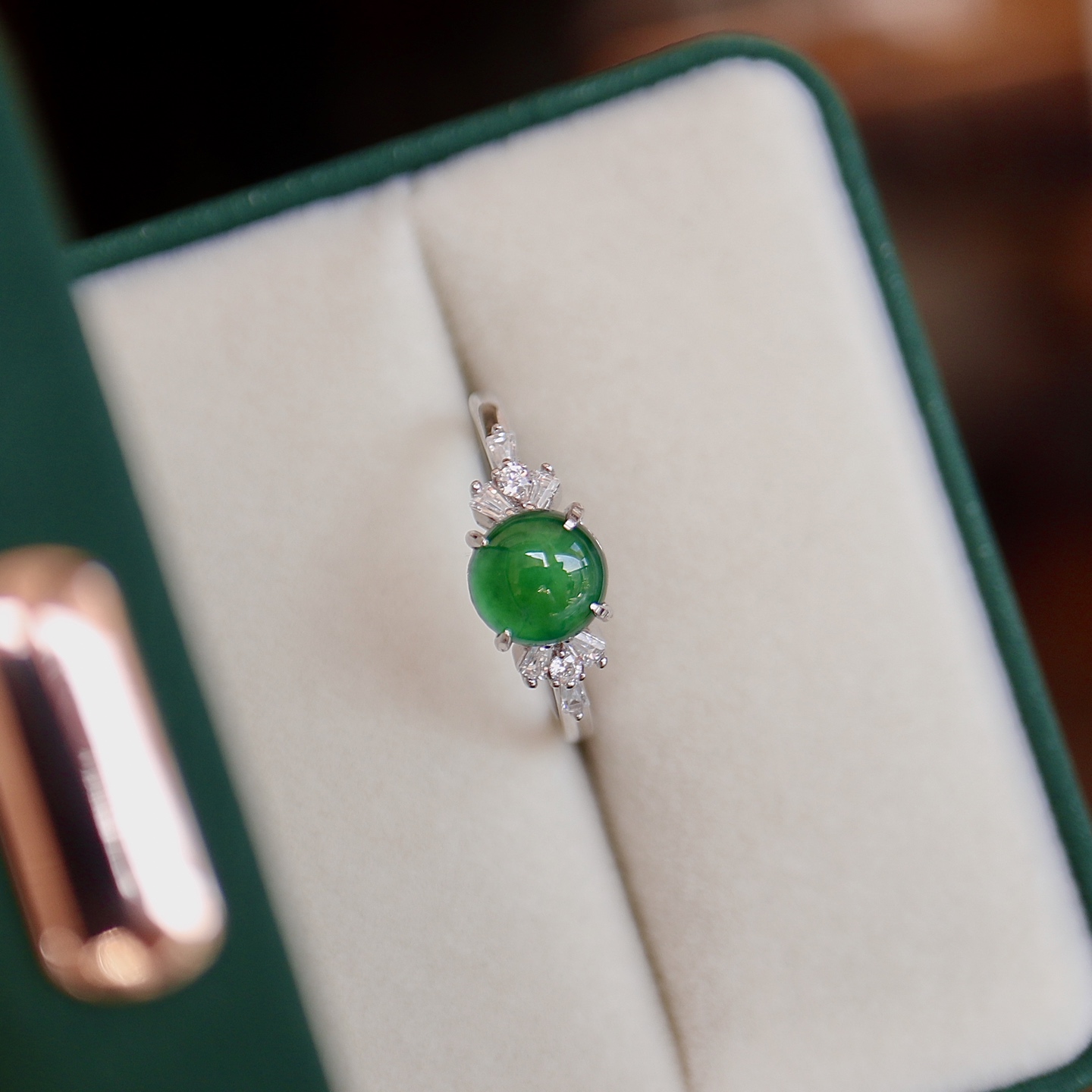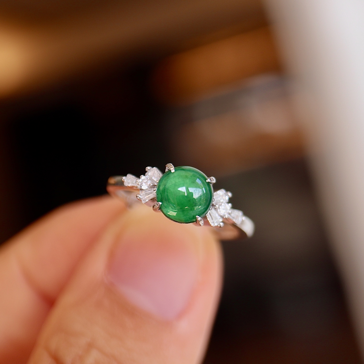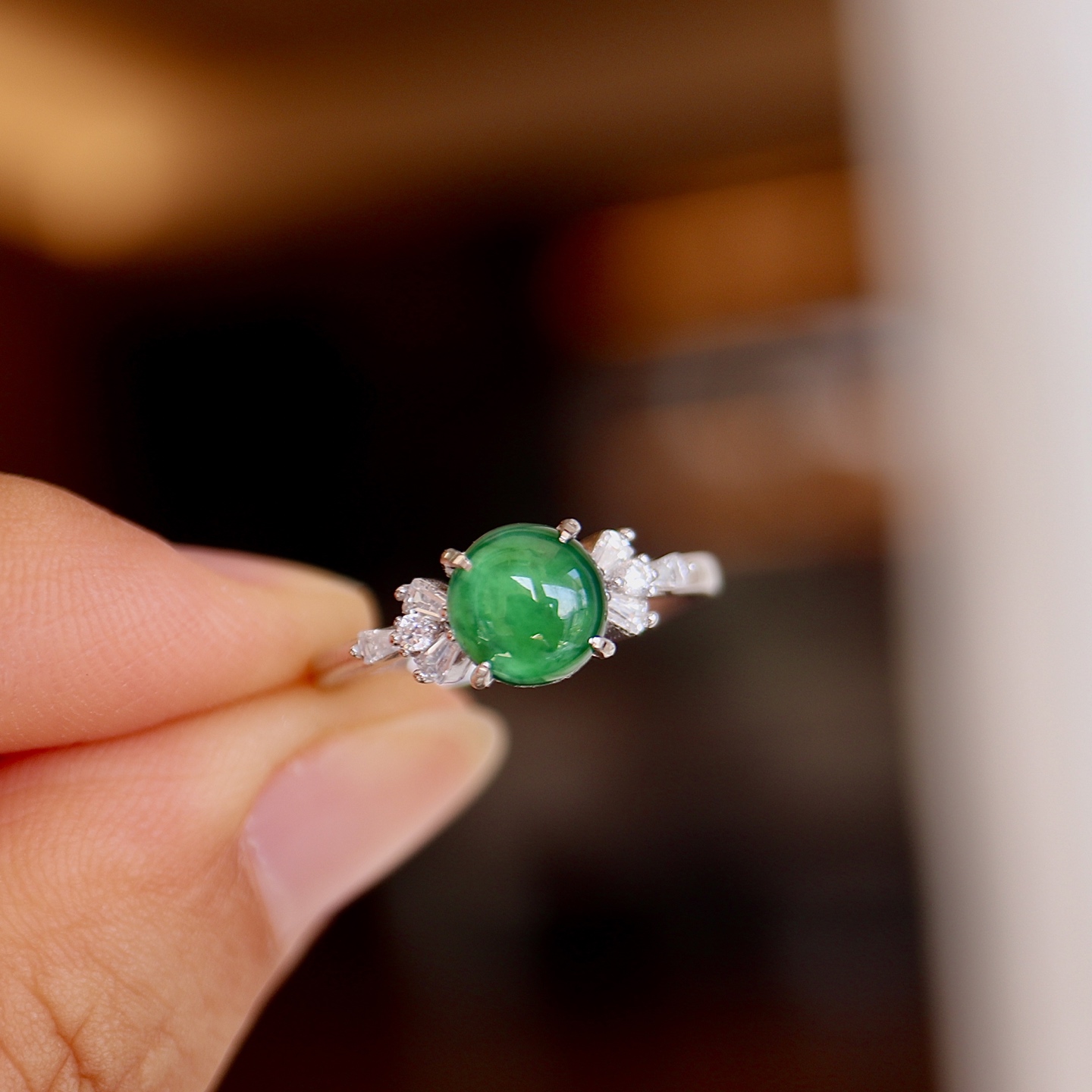 天然A货翡翠纯银戒指 大尺寸 约7mm 大点位 冰阳绿 S925纯银 豪华镶嵌 优雅简约 满满的高级感